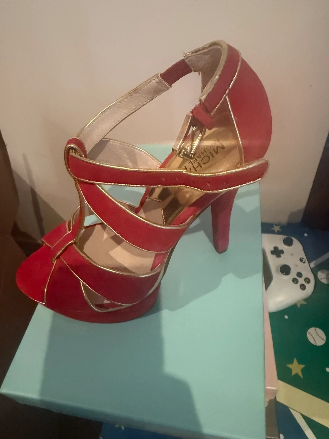 MICHAEL Michael Kors Red Gold Strappy Heels