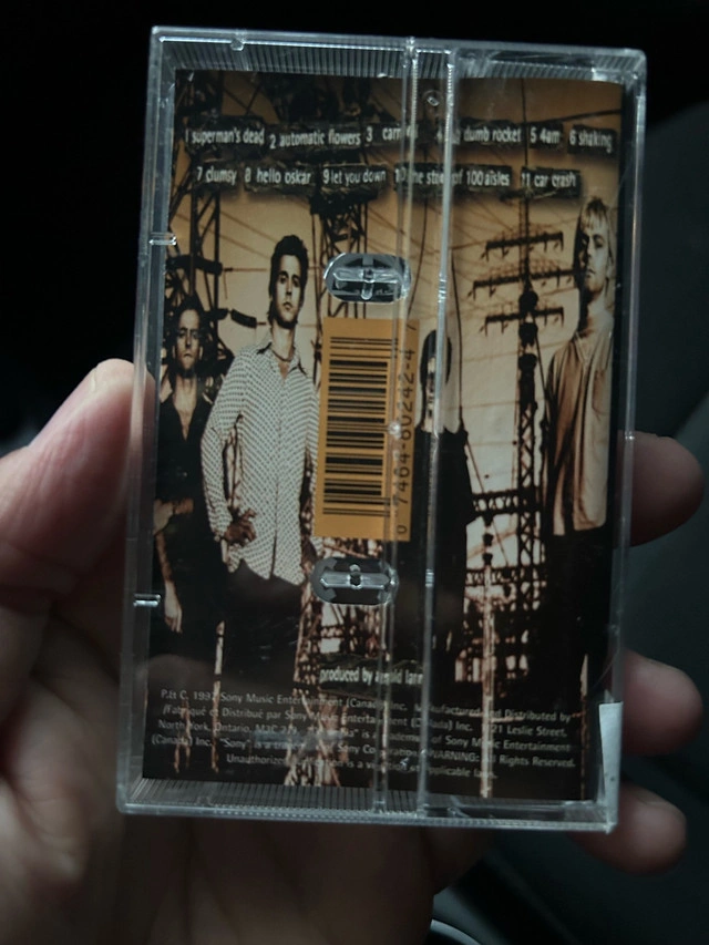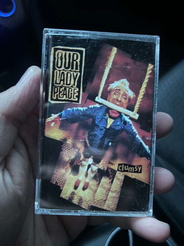 Own a piece of 90's nostalgia with this Our Lady Peace Clumsy cassette tape! This tape includes the classic album, perfect for any collector or fan. The condition of the tape is good considering its age, offering a vintage listening experience. This is a used tape. Tracks include: *Superman's Dead *Automatic Flowers *Carnival *Big Dumb Rocket *4 am *Shaking *Clumsy *Hello Oskar *Let You Down *The Story of 100 Aisles *Car Crash