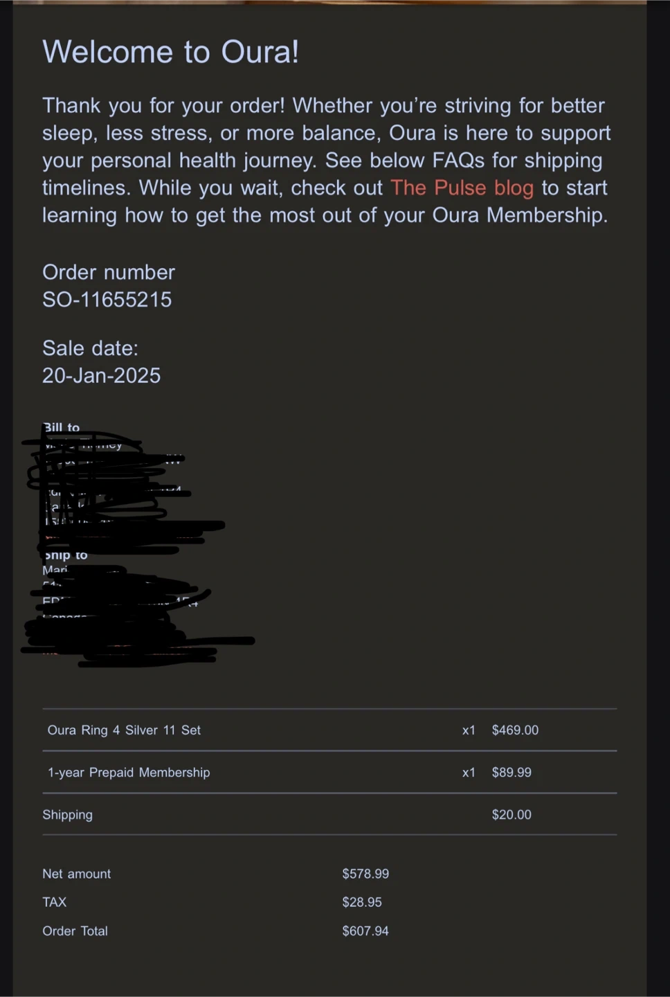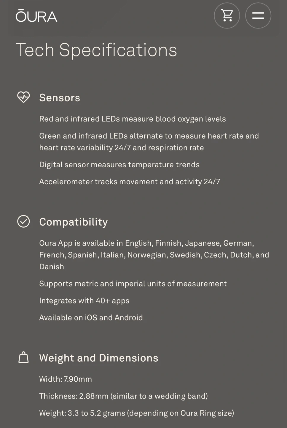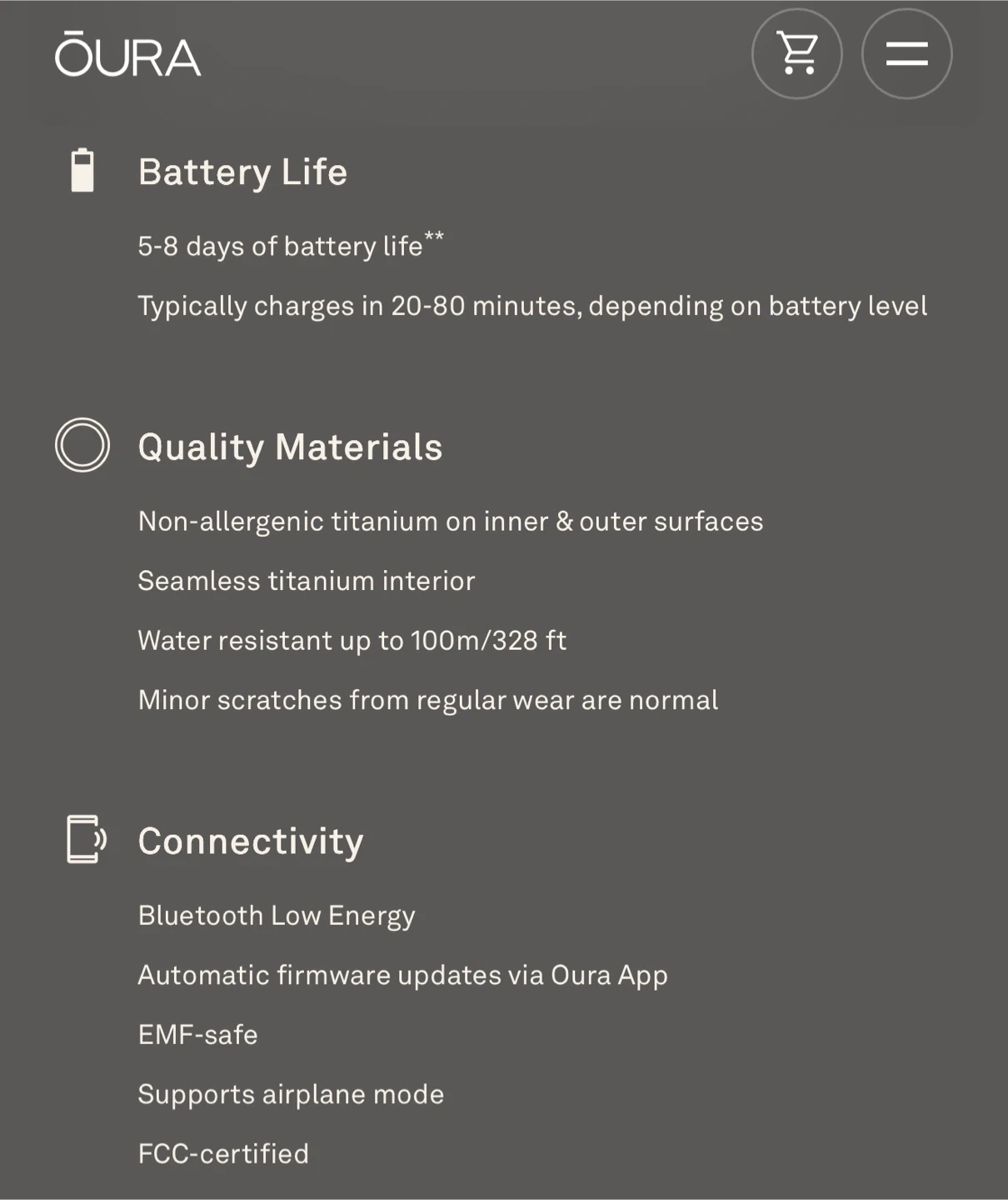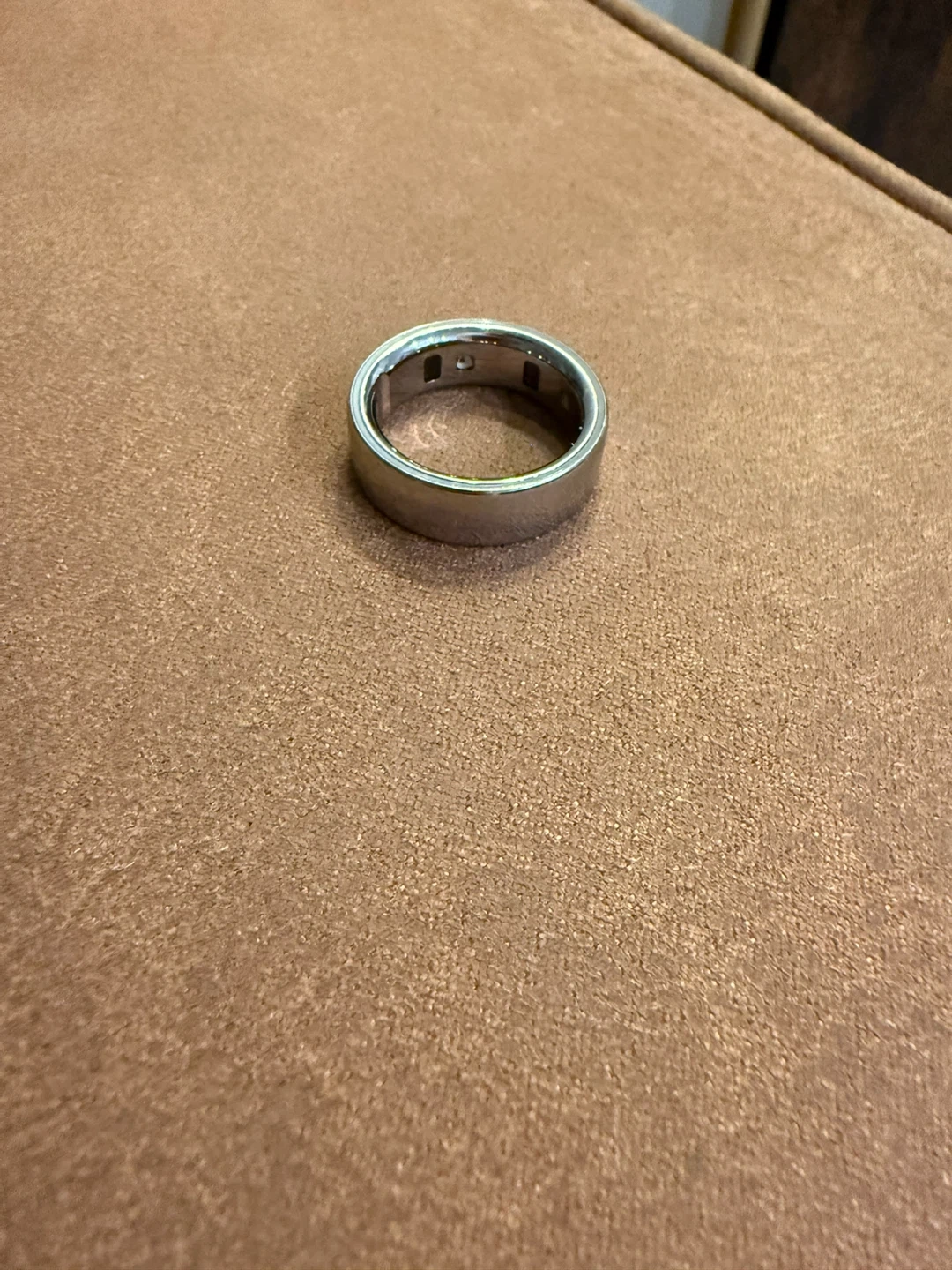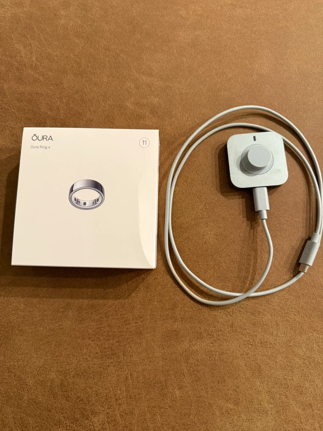 Oura Ring 4, their most current smart ring. Size 11 Silver Titanium It comes with the original box and charger. Purchased in January 2025 and is now too big to wear. In good working condition, slight scratches that are not very noticeable.