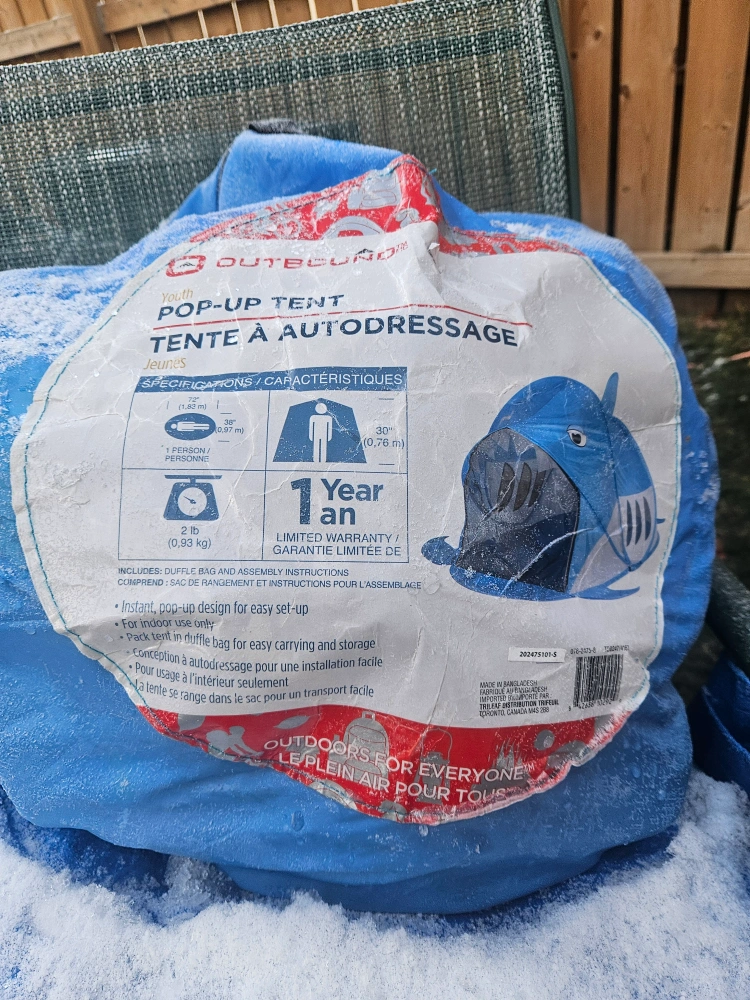 Selling an Outbound Youth Pop-Up Tent. It features: - Instant, pop-up design for easy set-up - Duffle bag for easy carrying and storage - For indoor use only - Dimensions: 72" (1.83m) x 38" (0.97m) x 30" (0.76m) - Weight: 2 lb (0.93 kg) Includes duffle bag and assembly instructions