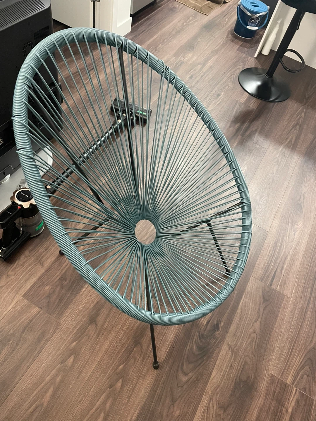 46Selling a gently used outdoor chair! It's a stylish and comfortable chair that would look great. The teal colour is really nice and adds a pop of colour to your space
