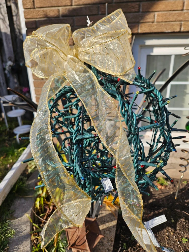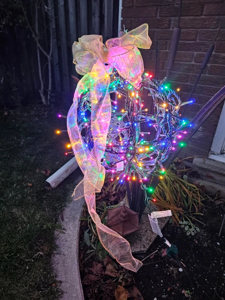 940I made this. Add some festive cheer to your outdoor space with this lighted ball decoration! It features colourful lights and a pretty gold ribbon. Perfect for the holidays! Sfpf Oshawa Harmony Road South at 401