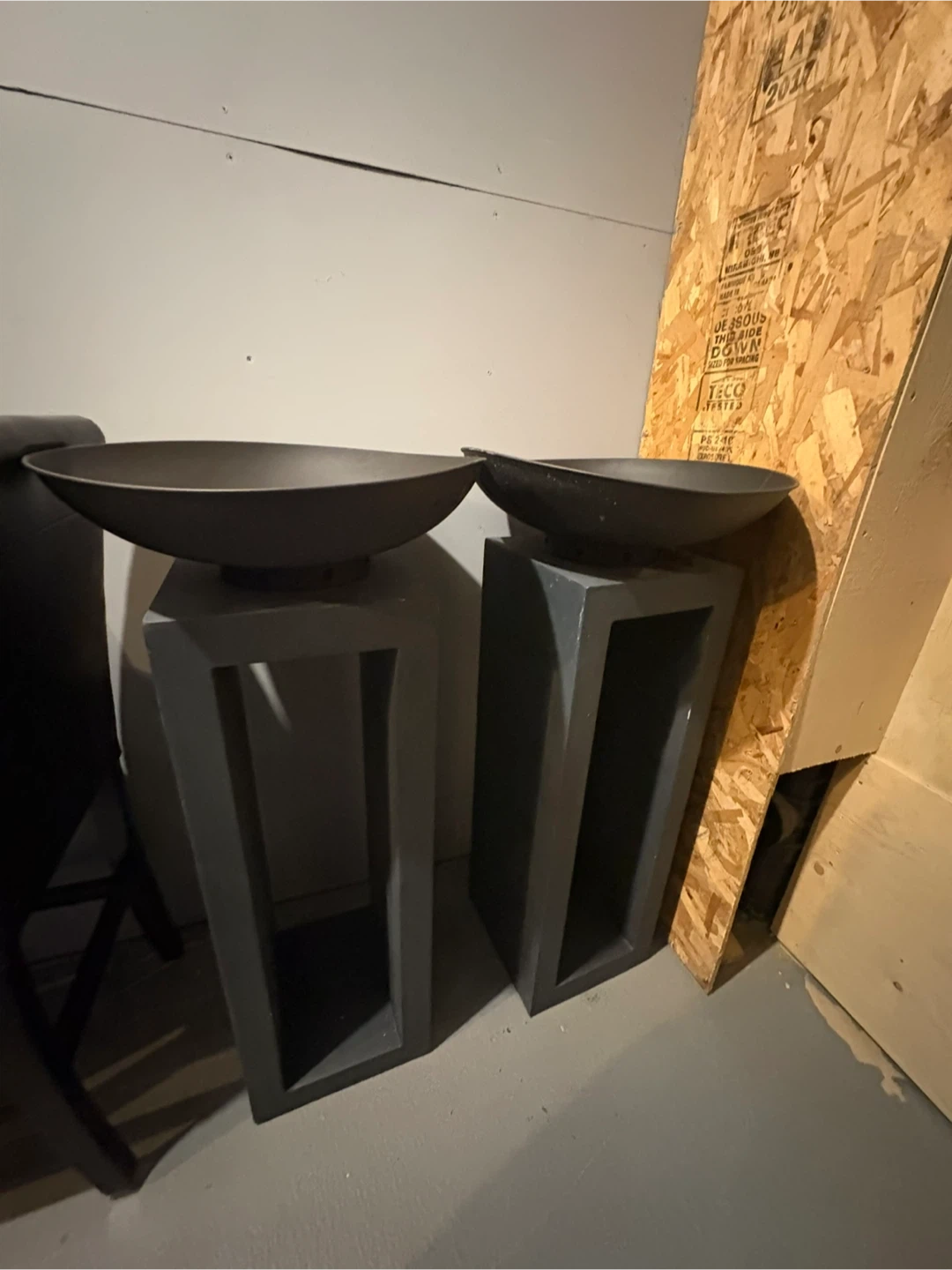 Selling a set of heavy outdoor fire consoles with stands. They're in good shape with some rust in the bowls. The stands are a modern, geometric design. $100 for both or $60 for one