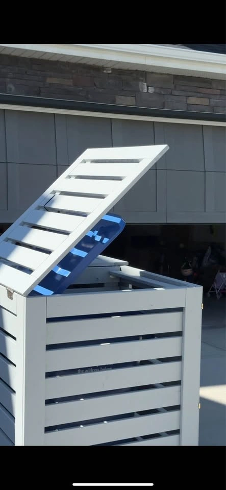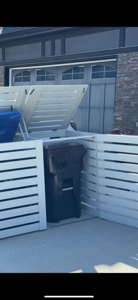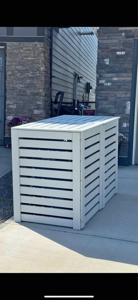 10Stylish and durable 2-bin garbage enclosure Fits two standard 240L bins Made from solid pine wood with weather-resistant coating Animal-protective design – keeps wildlife out Custom colors available to match your home Can be made for any number of bins (1–4)