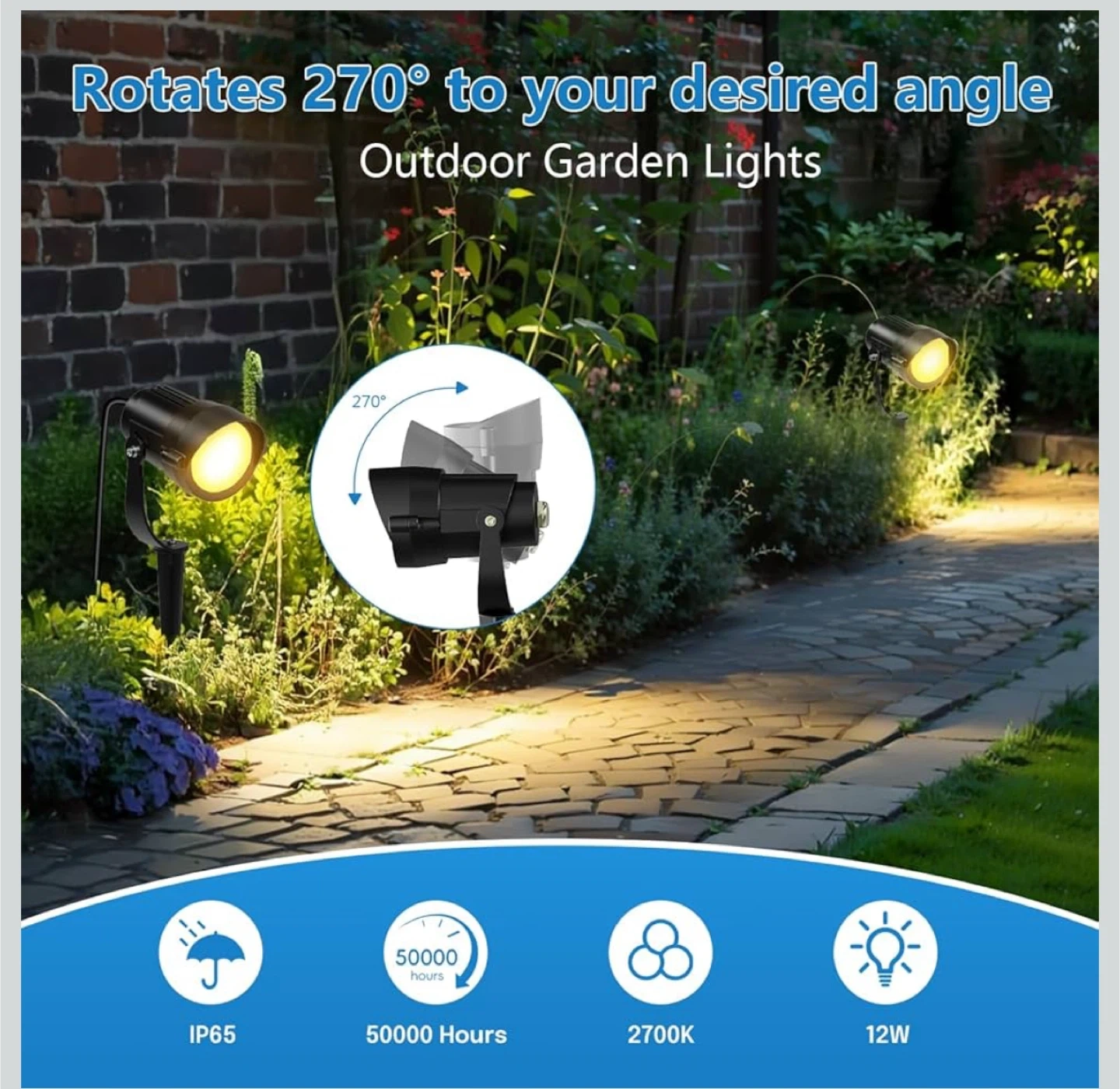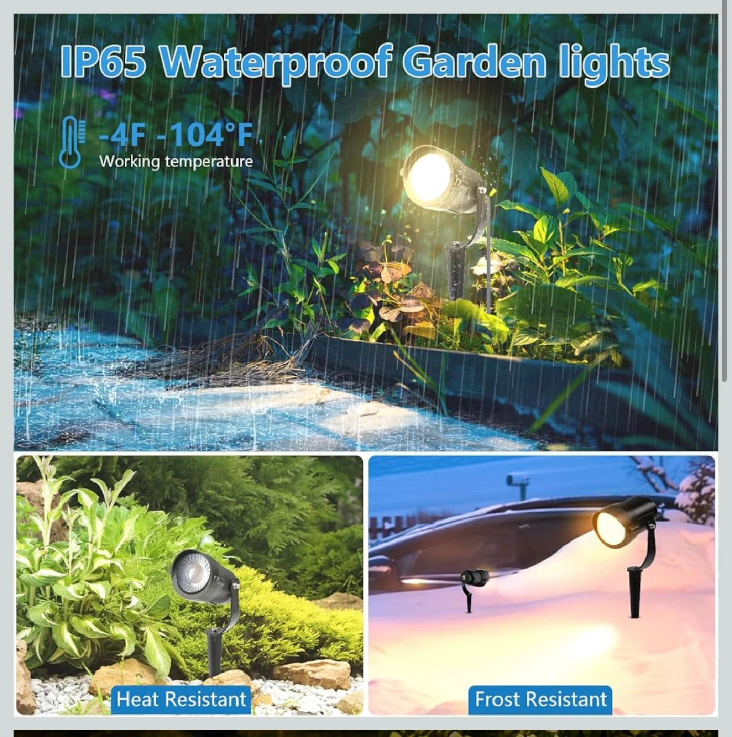 532These outdoor garden lights are perfect for adding some brightness to your landscape! They rotate 270° to your desired angle. They're also IP65 waterproof, heat resistant, and frost resistant. The working temperature is -4F to 104F. They're easy to install too!