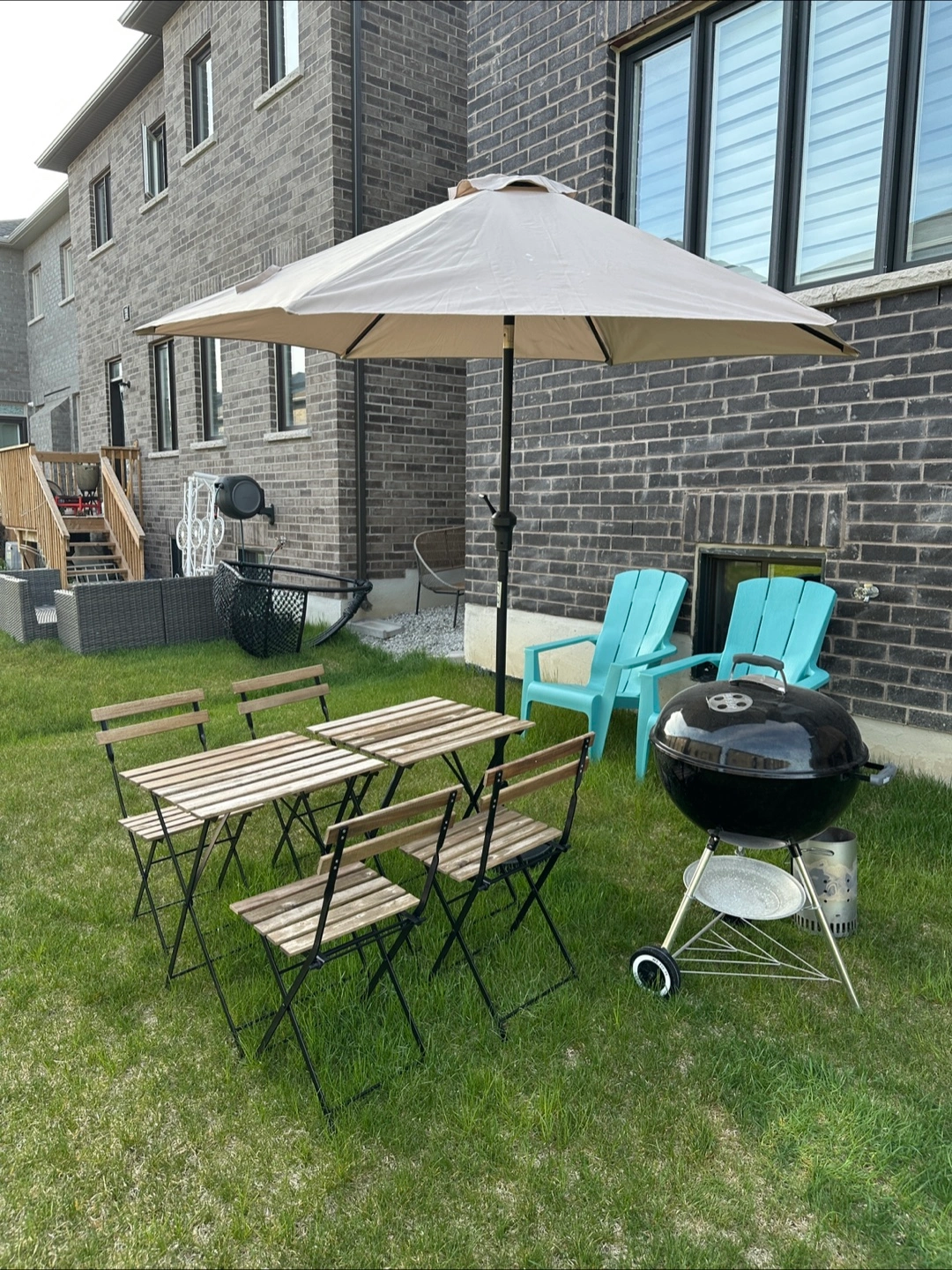 Outdoor Patio Set with Umbrella and Kettle Grill