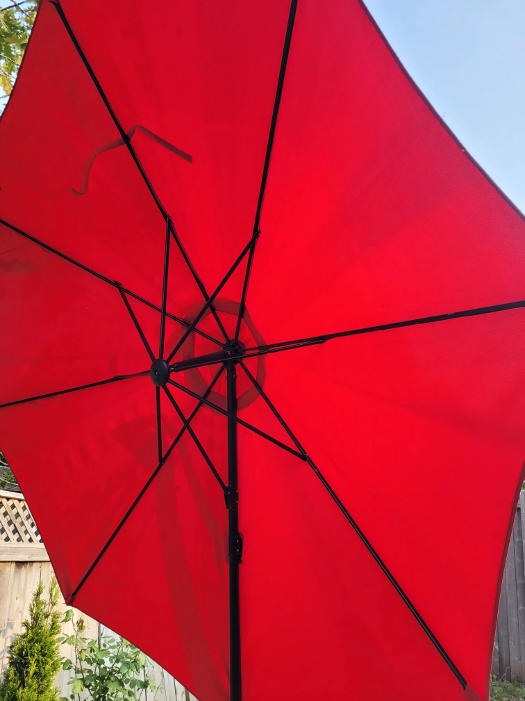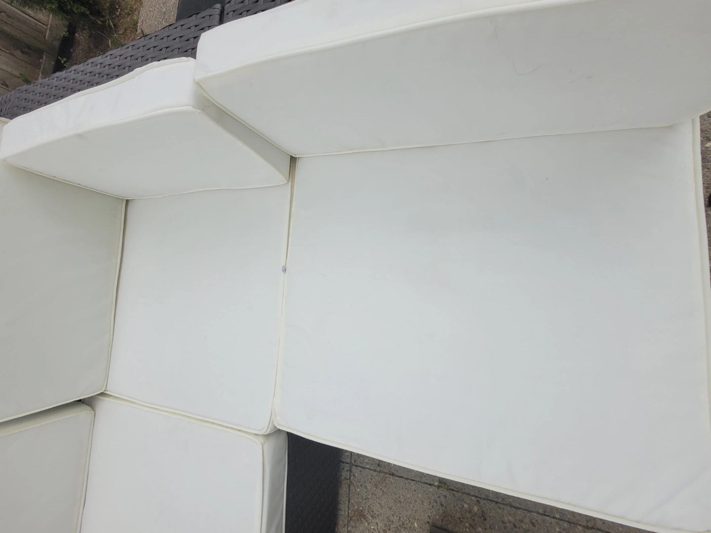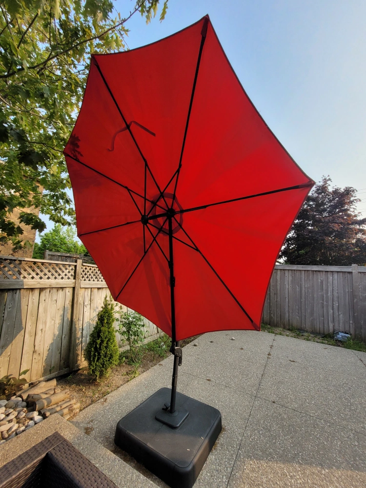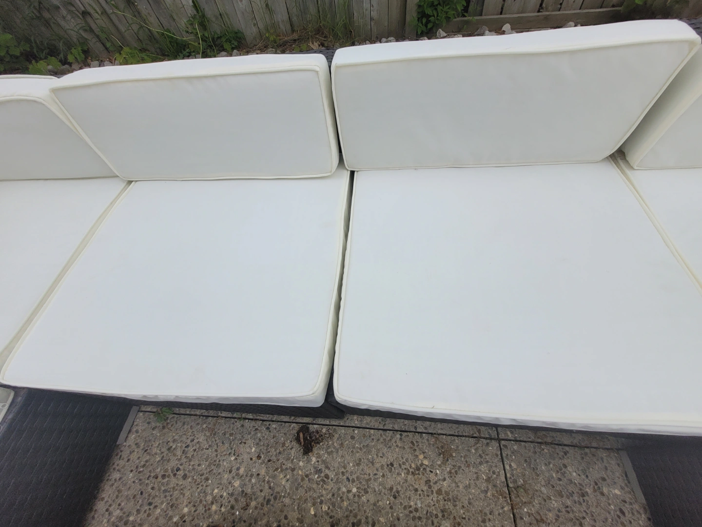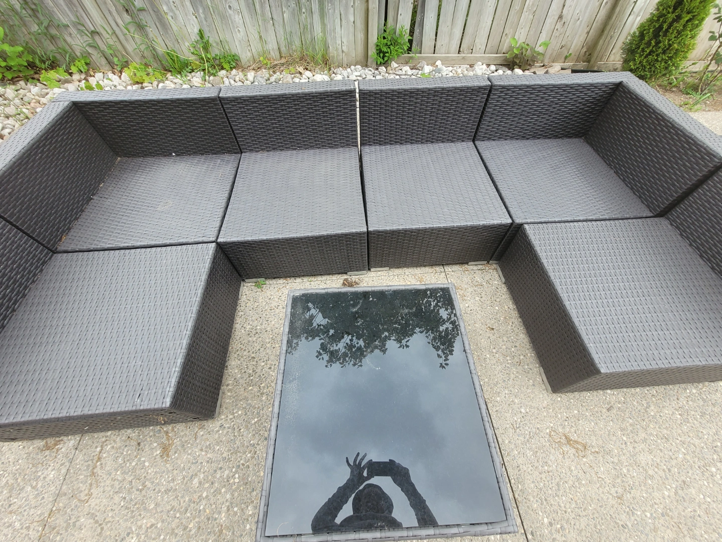 15Sectional sofa with cushions. Included is a matching coffee table. Imagine yourself reading a book on this set, enjoying the beautiful weather. 7 pieces patio set and umbrella original price is 1100$ umbrella original price 200$ 600$ for the set 100$ for the umbrella together 650
