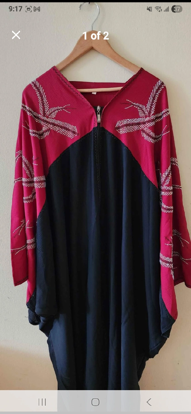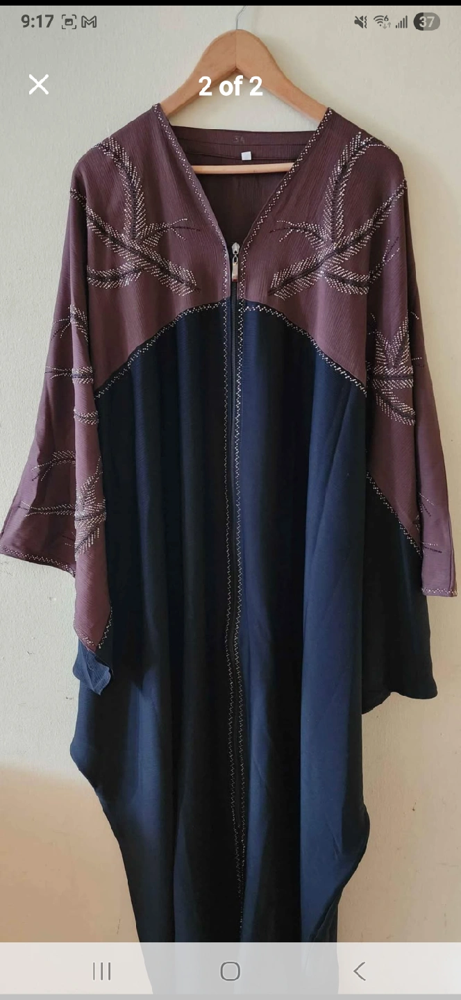 Here's a long sleeve dress with a unique design! It features a zipper closure and a stylish colour block pattern. Perfect for adding a touch of elegance to your wardrobe .each kaftan 45$