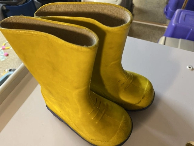 These are yellow boots size 6 for kids, in used condition. They have been great for puddle jumping! Get ready for the rainy season with these vibrant yellow size 6 boots, perfect for keeping your little one's feet dry and stylish. These boots have lots of life left! Baby sized boots. If the ad is still up, the boots are available!