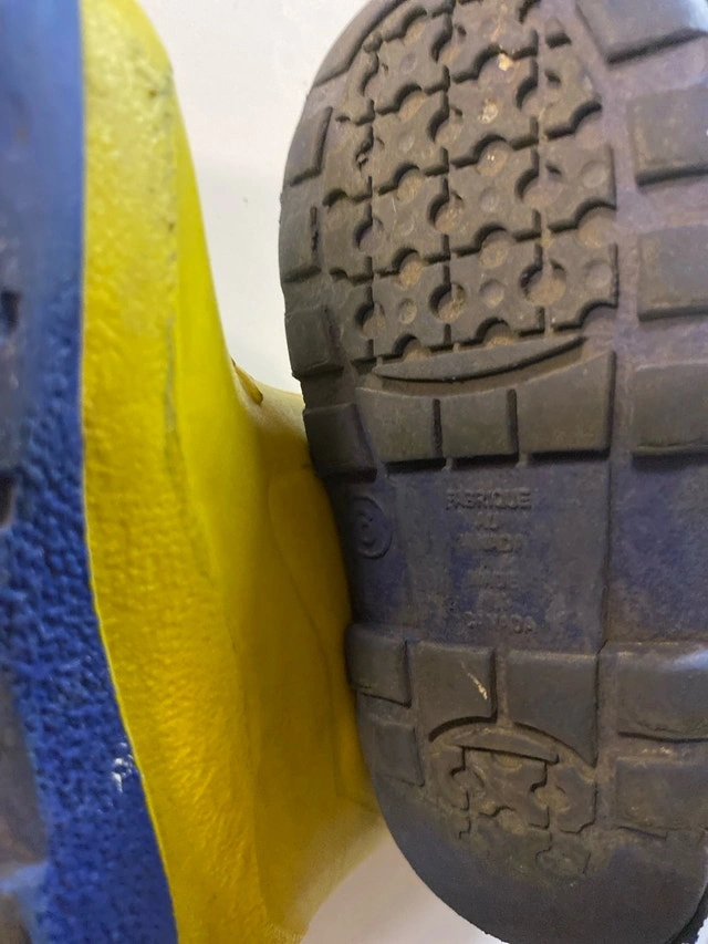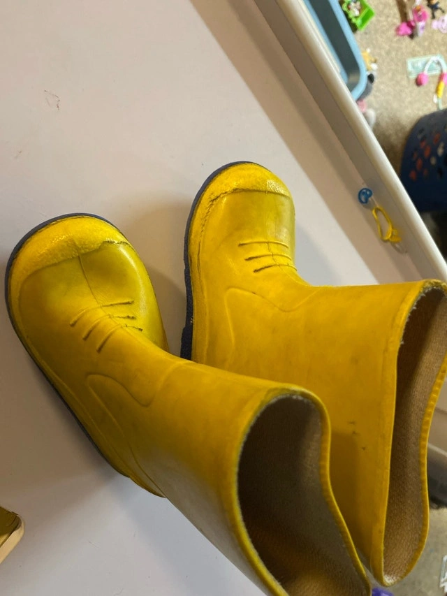 These are yellow boots size 6 for kids, in used condition. They have been great for puddle jumping! Get ready for the rainy season with these vibrant yellow size 6 boots, perfect for keeping your little one's feet dry and stylish. These boots have lots of life left! Baby sized boots. If the ad is still up, the boots are available!
