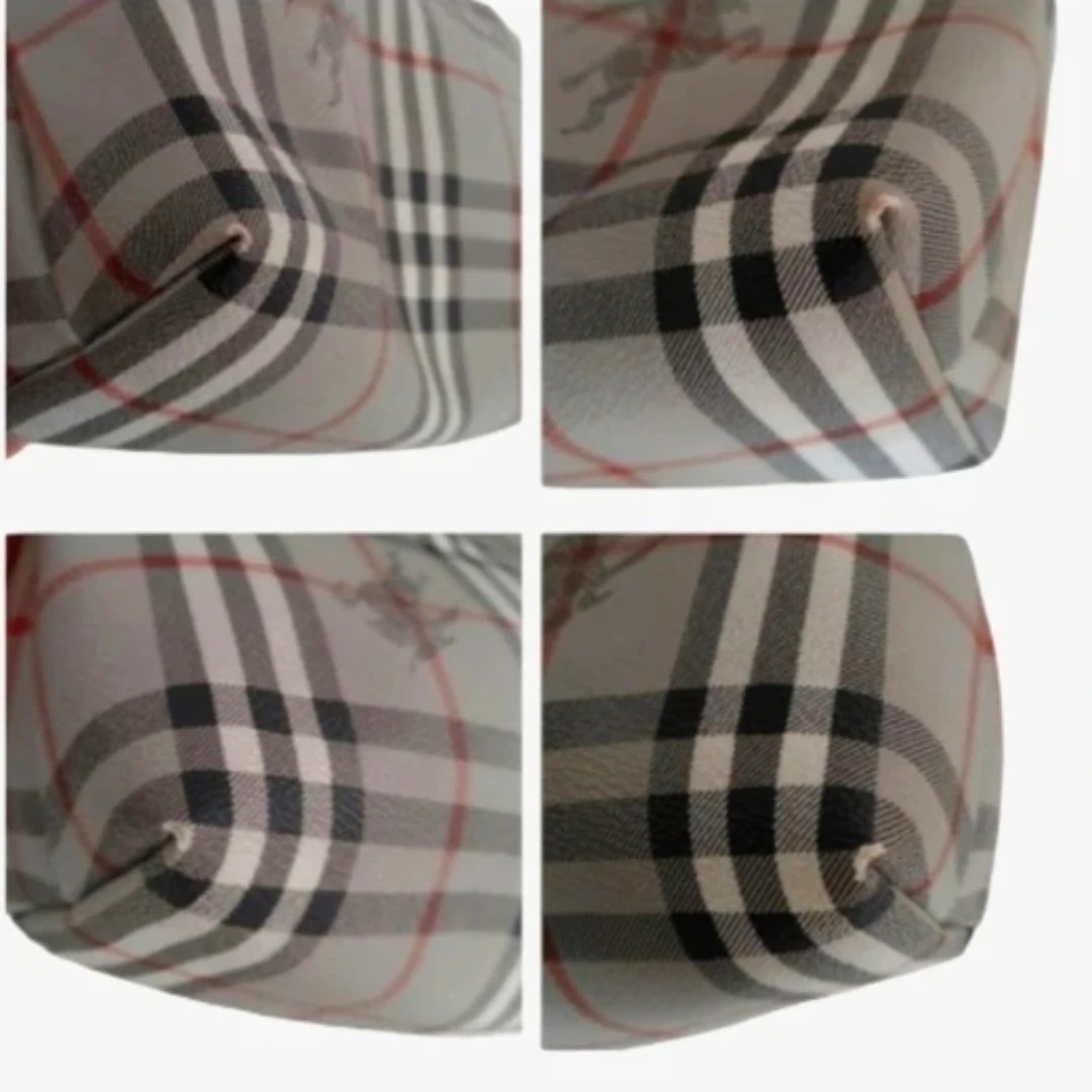 Authentic Burberrys Grey Multi Check Print Canvas Leather Bag.