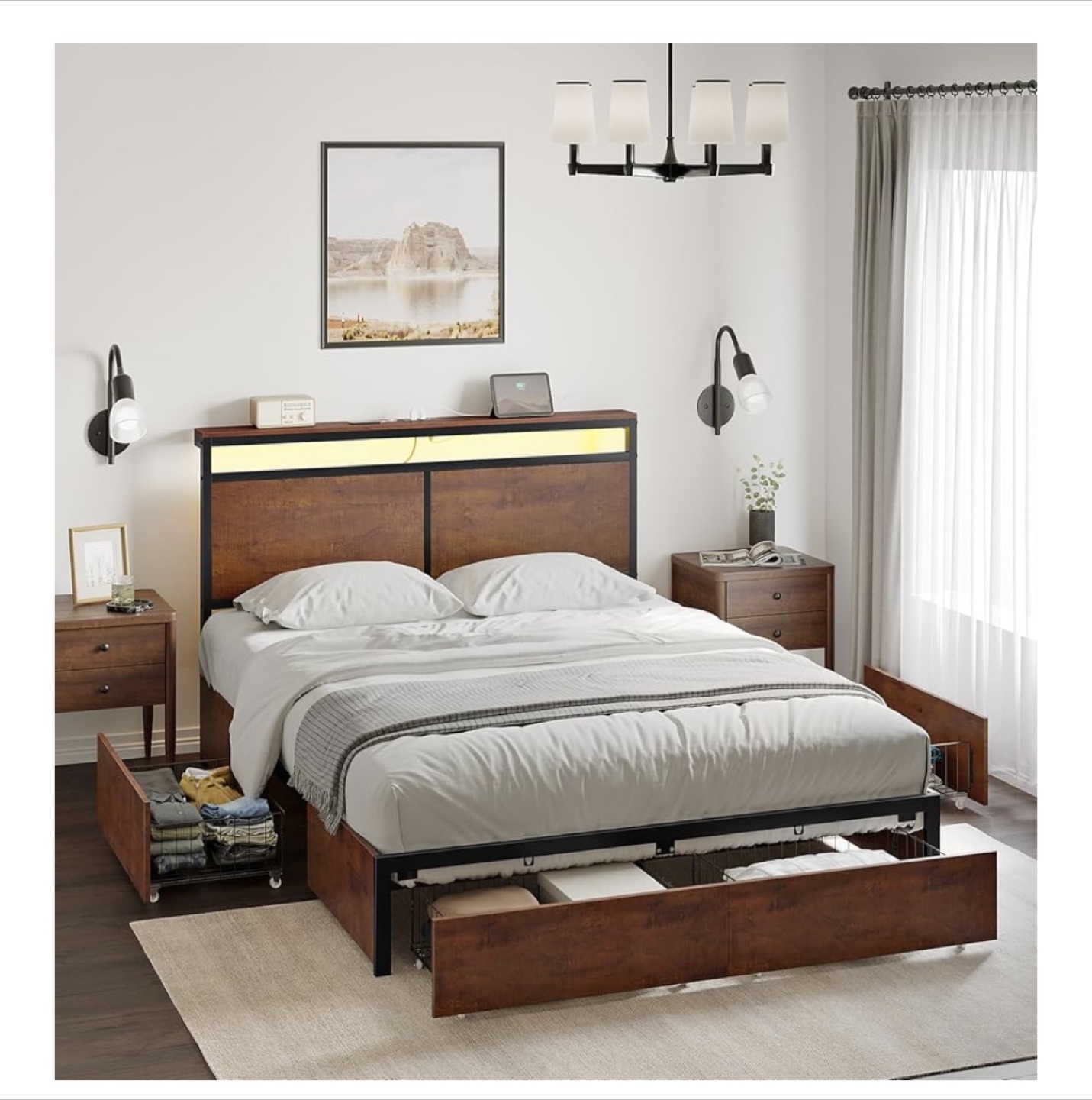 Queen Size Bed Frame with LED & Storage