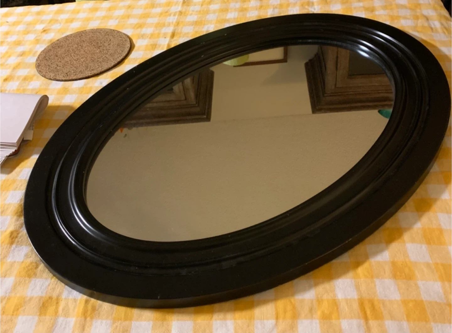 15Selling a lovely oval mirror with a brown wood frame. It measures approximately 21x28 inches (53x71cm). Hanging hardware is included, so it's ready to be mounted!