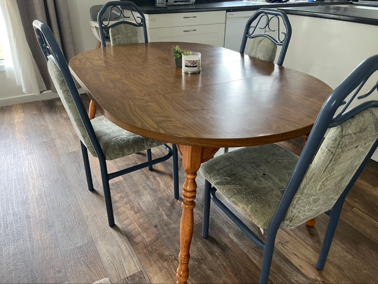 HomeBuy and sellOval dining table with four chairsKateSteinbach750 reviewsSoldOval dining table with four chairsFurniture · FreeWooden oval dining table, four matching chairs. Dark wood finish. Table has a leaf. Chairs have a grey patterned fabric seat.Where to meet0 chats·1 favourite·14 viewsGet the Karrot appPopular on KarrotShow allBed frame$75Saint AdolpheDrawer Slides - Hardware$44SteinbachRed Bench Vise No. 6$24SteinbachWhite Entryway Bench with Wicker Basket$168SteinbachX-Large Silver Accent Lamp$56MitchellUpholstered Footstool$20DufrostBrown Leather Sofa$629Grande Pointe