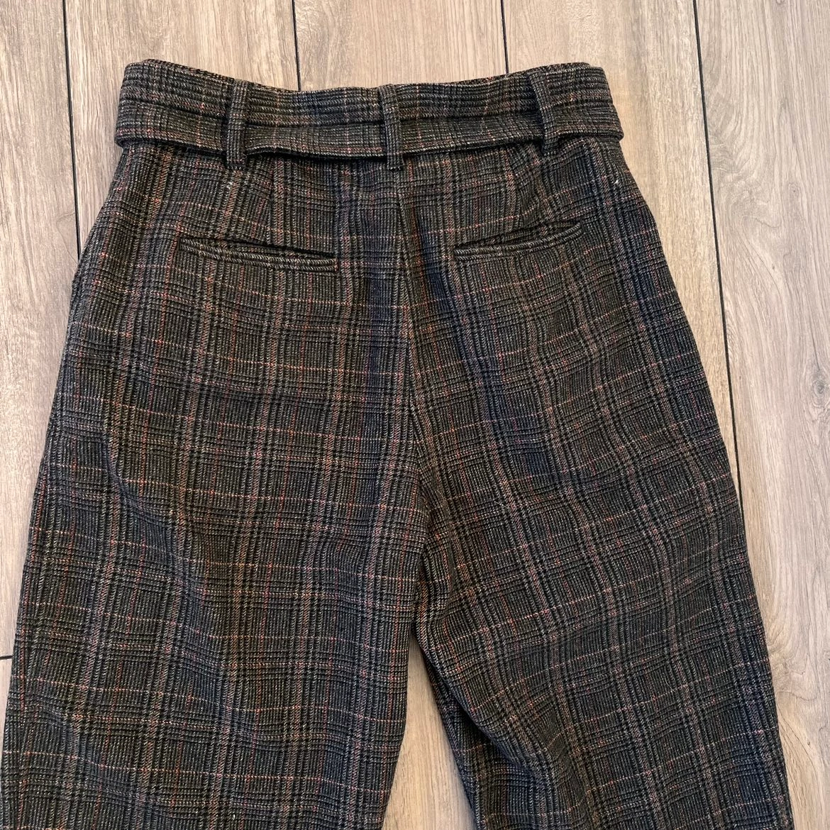 Aritzia Wilfred Tie-Front Wool Pant Size 4 in a checkered design with removable belt.