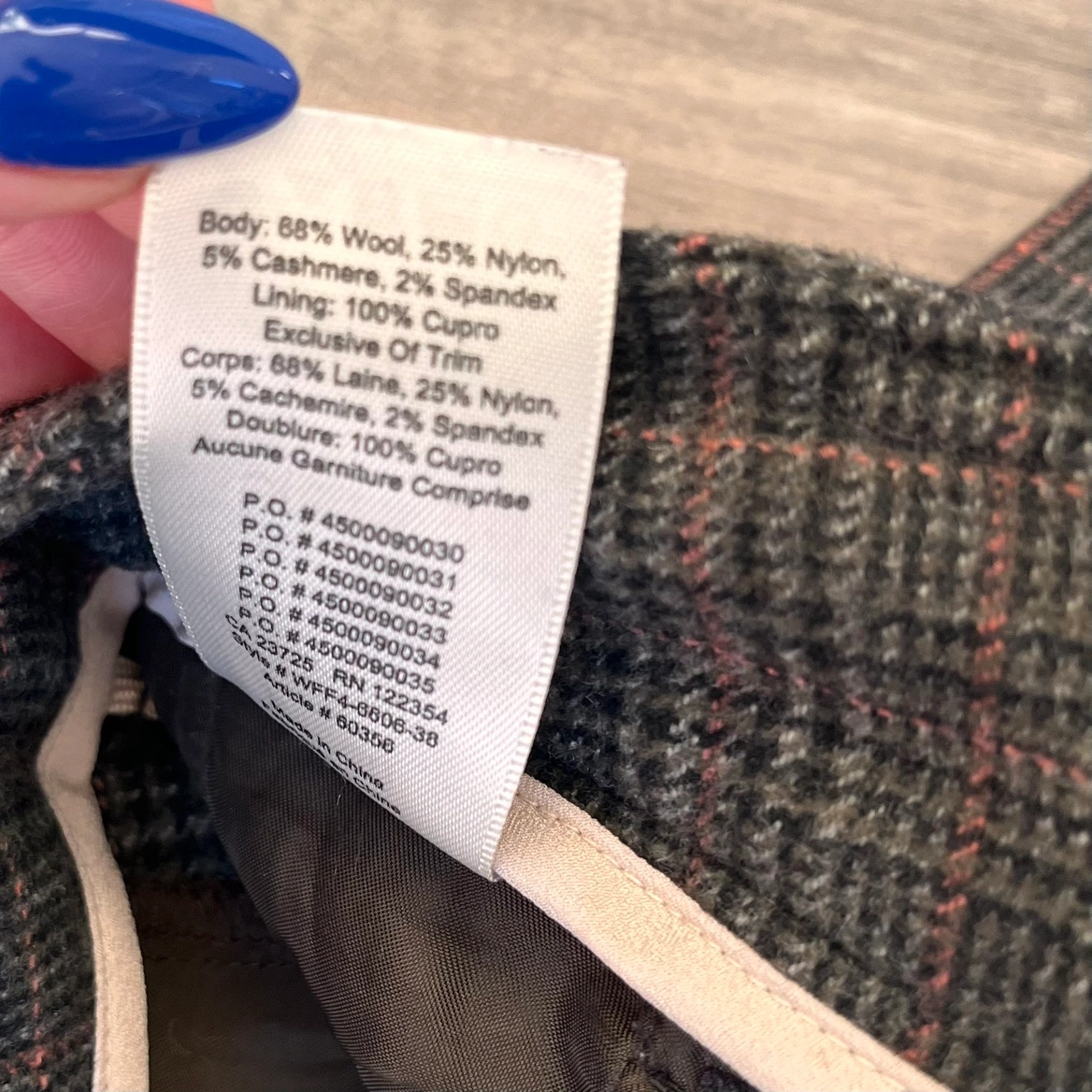 These gorgeous pants are made of a luxurious wool and cashmere blend and are very warm for the fall and winter months.