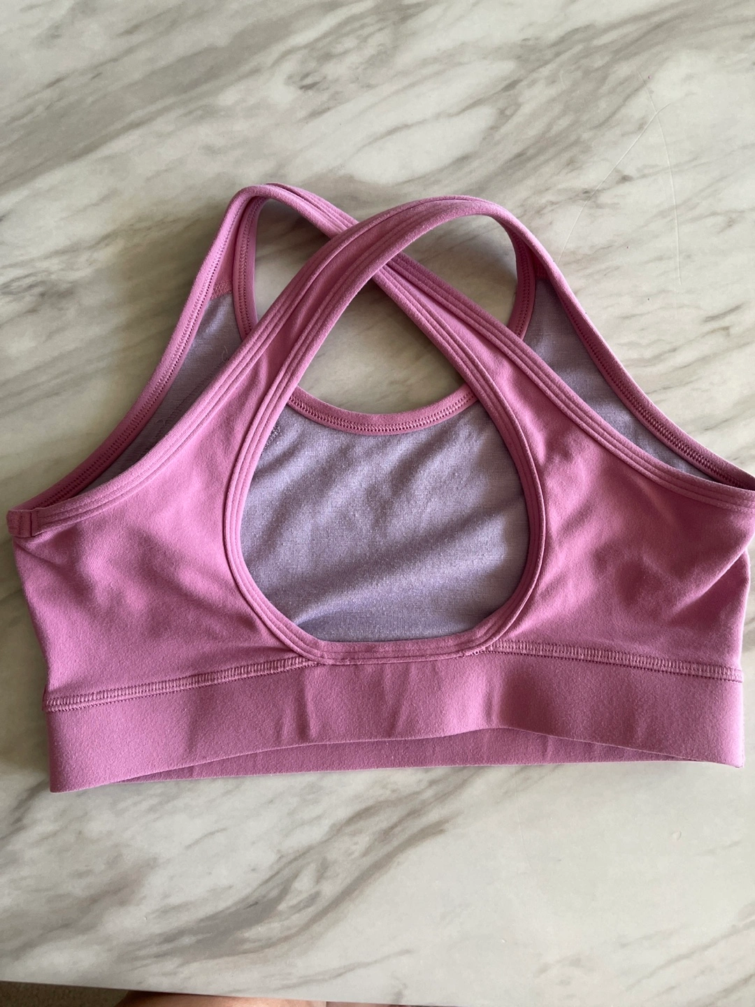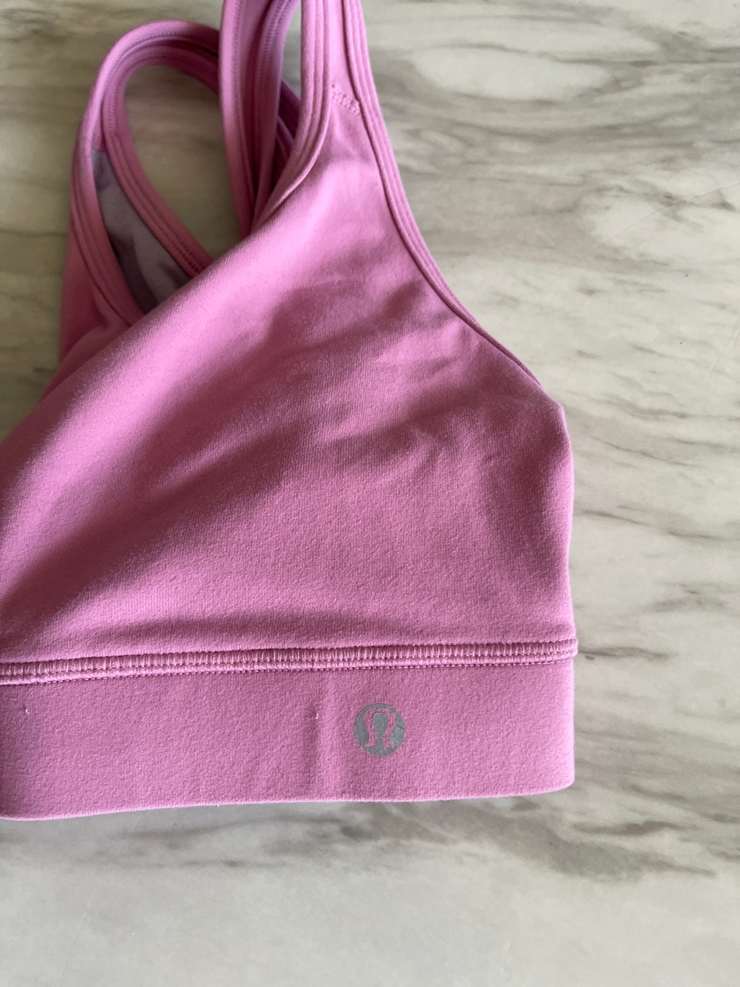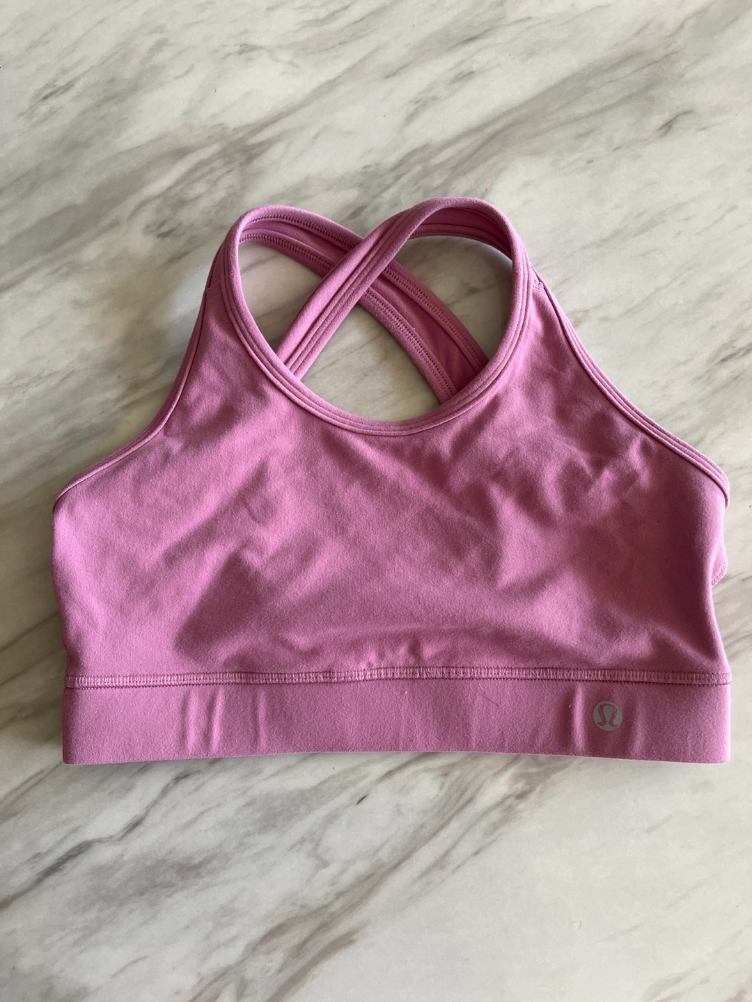 Selling a Lululemon sports bra in a lovely pink colour! It's in great condition and ready for a new home. Perfect for workouts or everyday wear I can’t find the size. I am pretty sure size 4