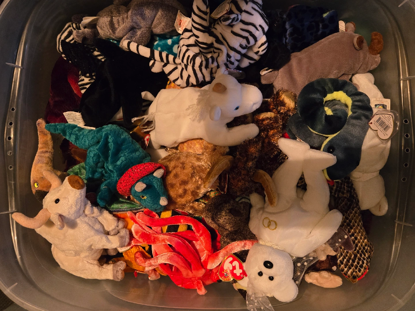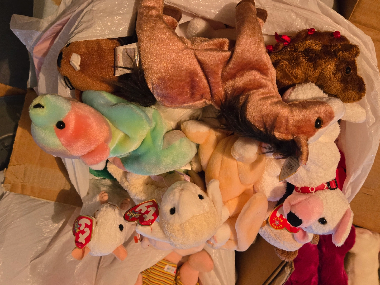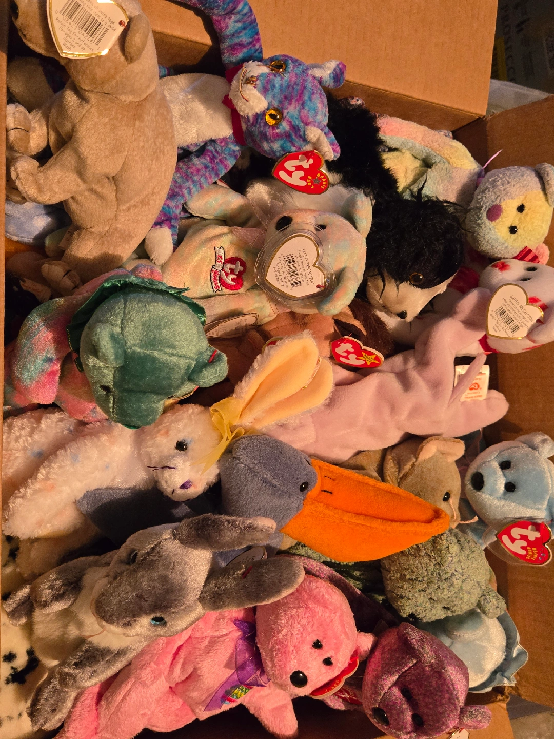 Selling a collection of Beanie Babies plush toys! There's a variety of different animals to choose from. Great for collectors or kids who love stuffed animals. Individually priced at $2 and up. Make an offer. Message for full list. Nectar the Hummingbird Ty 2K Peking the Panda Peanut the Royal Blue Elephant Hoppity the Bunny Tracks the Lynx Prance the Cat Frisbee the Dog Amber the Cat Floppity the Rabbit Purr the Cat Scat the Cat Scoop the Pelican Kooky the Cat Frolic the Dog Carrots the Bunny Hopper the Bunny Almond the Bear Happy the Hippopotamus Discover the Bear 2000 Signature Bear Eggs II the Bear Derby the Horse Smooch the Bear Sakura 2 the Bear - Japan exclusive Derby the Horse Groovy the Bear Eggs the Bear Shamrock the Bear May the Bear March the Bear Celebrate the Bear Hairy the Spider Lefty 2000 the Donkey 2002 Holiday Teddy the Bear 2002 Signature Bear December the Bear Whisper the Deer Vegas the Zebra July the Bear Teddy the Bear Chinnok the Bear - Canada exclusive Germania the Bear - Germany Exclusive Champion Korea FIFA World Cup Bear Prinz Von Gold the Bear Fridge the Polar Bear Stubby the Pig Curly the Bear Squealer the Pig Halo the Bear Mum the Bear Harry the Bear Wallace the Bear Decade the light Blue Bear Mistletoe the Bear 2000 Holiday Teddy Bear Smitten the Bear Blackie the Bear Valentina the Bear Addison the Bear September the Bear Cashew the Bear Woody the Bear Cubbie the Bear Sammy the Bear Poopsie the Bear Clubby 2 the Bear Sherbert the Seafoam Bear Kanata New Brunswick Kanata Nunavit Kanata the Bear - Ontario Kanata the Bear - British Columbia Kanata Manitoba Baby Girl the Bear Periwinkle the Bear Cinders the Black Bear June the Bear 1998 Holiday Teddy the Bear Fuzz the Bear Hero the Father's Day Bear The End Bear Jolly the Walrus Baby Boy the Bear 1997 Holiday Teddy the Bear America the Bear - Red 1999 Holiday Teddy the Bear Hippie the Bunny Rufus the Dog Hippity the Bunny Scary the Witch Sherbet the Bear - Hot Pink Zoom the Turtle Cheeks the Baboon Santa Snowgirl the Snowgirl Stinger the Scorpion Scurry the Beetle Mystic the Unicorn - Brown Horn - Coarse Mane Wiggly the Squid Midnight the Black Panther Canyon the Cougar Spike the Rhinoceros Hornsley the Triceratops Quackers plus many, many more!