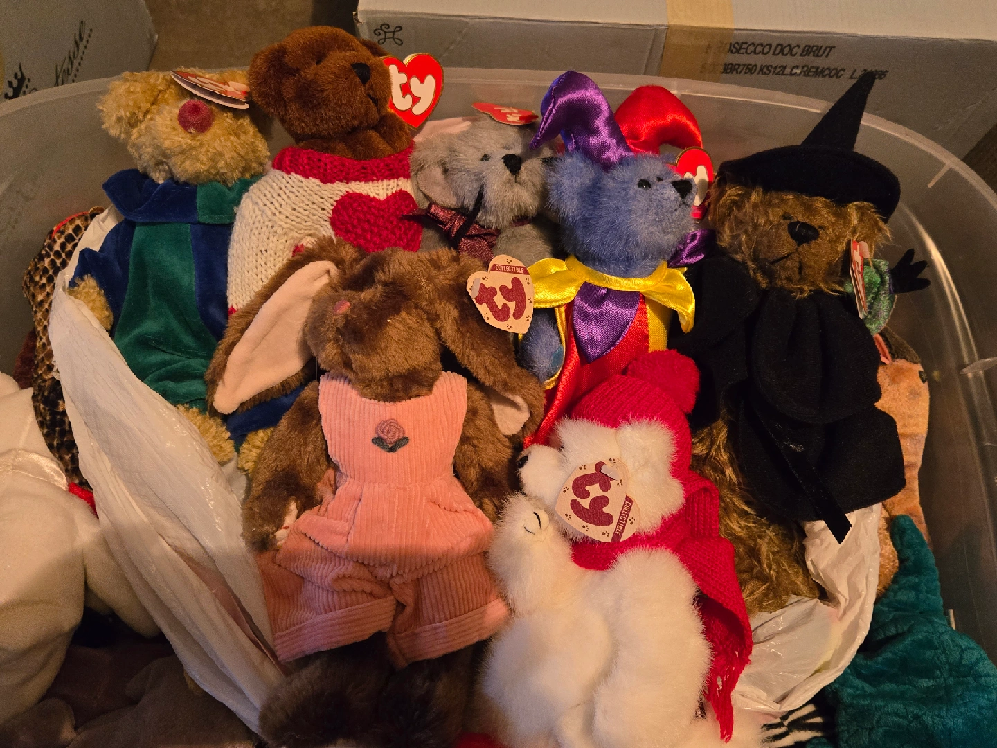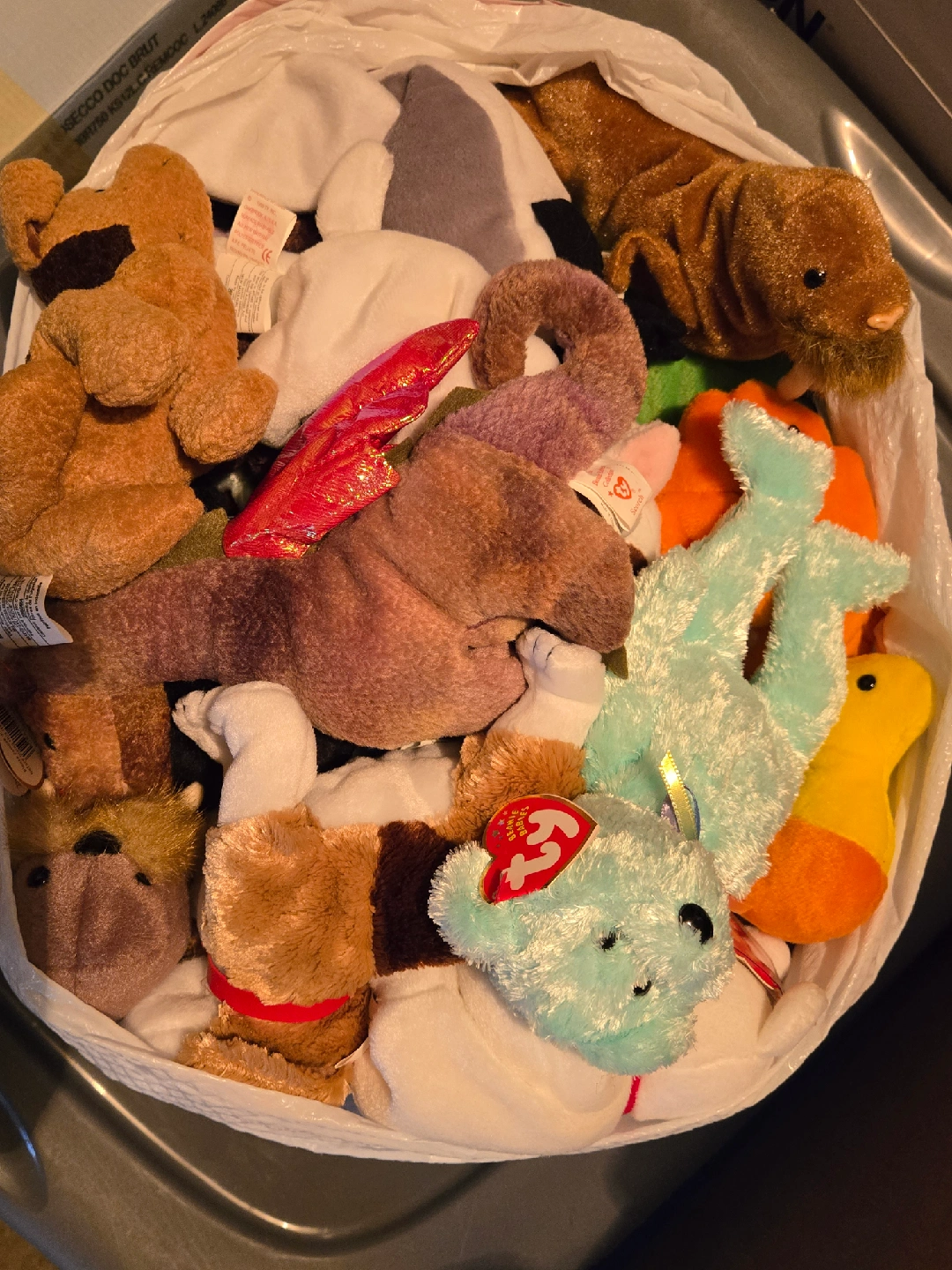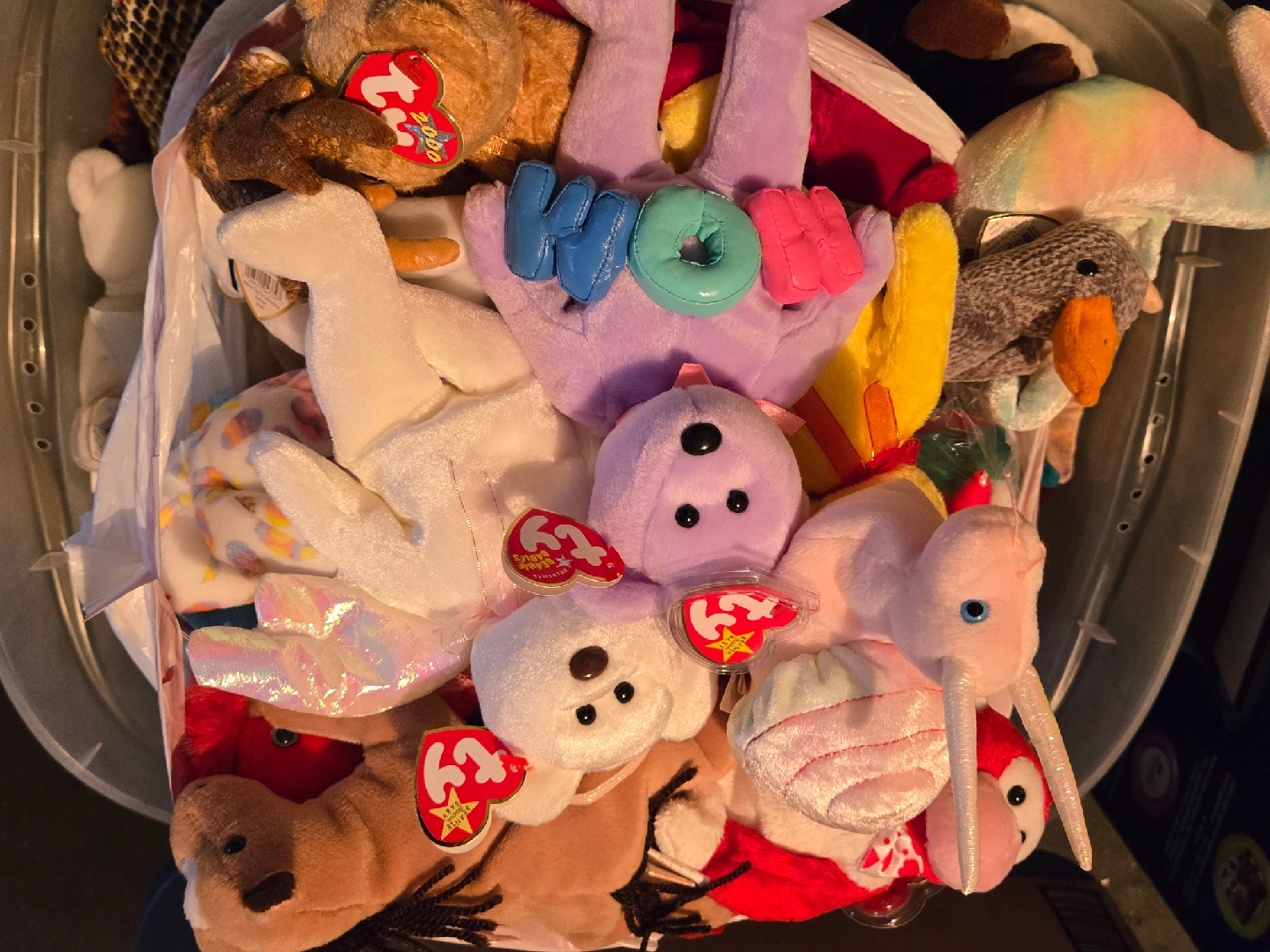 Selling a collection of Beanie Babies plush toys! There's a variety of different animals to choose from. Great for collectors or kids who love stuffed animals. Individually priced at $2 and up. Make an offer. Message for full list. Nectar the Hummingbird Ty 2K Peking the Panda Peanut the Royal Blue Elephant Hoppity the Bunny Tracks the Lynx Prance the Cat Frisbee the Dog Amber the Cat Floppity the Rabbit Purr the Cat Scat the Cat Scoop the Pelican Kooky the Cat Frolic the Dog Carrots the Bunny Hopper the Bunny Almond the Bear Happy the Hippopotamus Discover the Bear 2000 Signature Bear Eggs II the Bear Derby the Horse Smooch the Bear Sakura 2 the Bear - Japan exclusive Derby the Horse Groovy the Bear Eggs the Bear Shamrock the Bear May the Bear March the Bear Celebrate the Bear Hairy the Spider Lefty 2000 the Donkey 2002 Holiday Teddy the Bear 2002 Signature Bear December the Bear Whisper the Deer Vegas the Zebra July the Bear Teddy the Bear Chinnok the Bear - Canada exclusive Germania the Bear - Germany Exclusive Champion Korea FIFA World Cup Bear Prinz Von Gold the Bear Fridge the Polar Bear Stubby the Pig Curly the Bear Squealer the Pig Halo the Bear Mum the Bear Harry the Bear Wallace the Bear Decade the light Blue Bear Mistletoe the Bear 2000 Holiday Teddy Bear Smitten the Bear Blackie the Bear Valentina the Bear Addison the Bear September the Bear Cashew the Bear Woody the Bear Cubbie the Bear Sammy the Bear Poopsie the Bear Clubby 2 the Bear Sherbert the Seafoam Bear Kanata New Brunswick Kanata Nunavit Kanata the Bear - Ontario Kanata the Bear - British Columbia Kanata Manitoba Baby Girl the Bear Periwinkle the Bear Cinders the Black Bear June the Bear 1998 Holiday Teddy the Bear Fuzz the Bear Hero the Father's Day Bear The End Bear Jolly the Walrus Baby Boy the Bear 1997 Holiday Teddy the Bear America the Bear - Red 1999 Holiday Teddy the Bear Hippie the Bunny Rufus the Dog Hippity the Bunny Scary the Witch Sherbet the Bear - Hot Pink Zoom the Turtle Cheeks the Baboon Santa Snowgirl the Snowgirl Stinger the Scorpion Scurry the Beetle Mystic the Unicorn - Brown Horn - Coarse Mane Wiggly the Squid Midnight the Black Panther Canyon the Cougar Spike the Rhinoceros Hornsley the Triceratops Quackers plus many, many more!