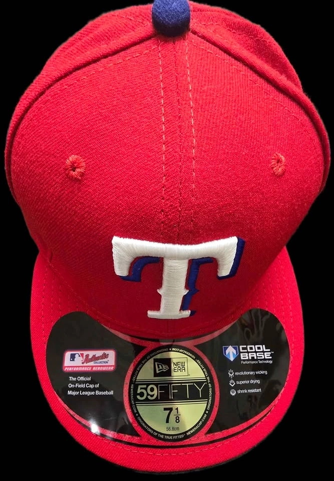 Sharp Texas Rangers fitted hat in a bold red colorway with the classic front “T” logo and World Series side patch. Great piece for a Rangers fan, fitted hat collector, or anyone looking for a strong on-field style cap.