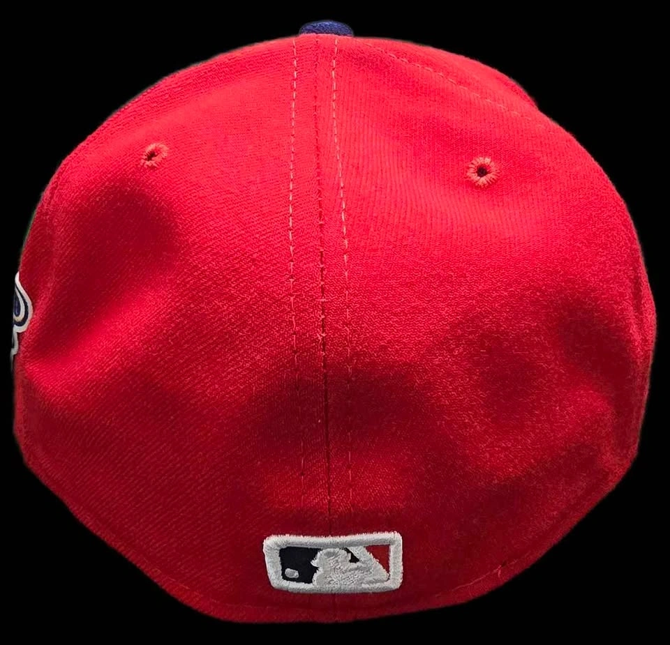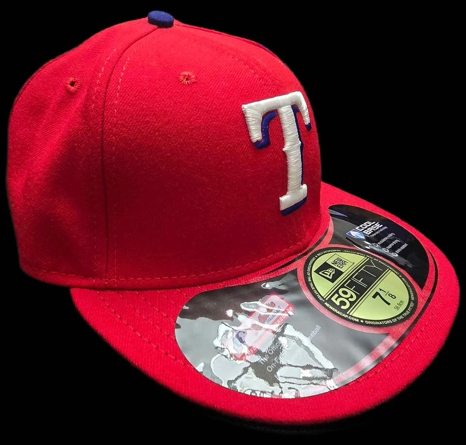 Sharp Texas Rangers fitted hat in a bold red colorway with the classic front “T” logo and World Series side patch. Great piece for a Rangers fan, fitted hat collector, or anyone looking for a strong on-field style cap.