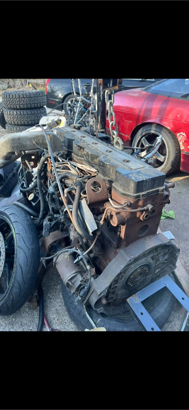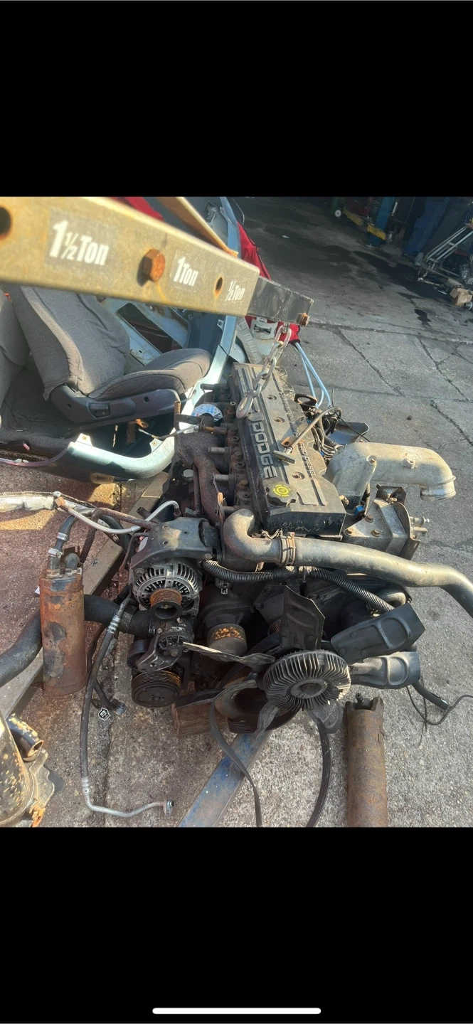 This is a used Dodge 24V Cummins turbo diesel engine. It's a complete assembly with visible components. Ready for direct swap!