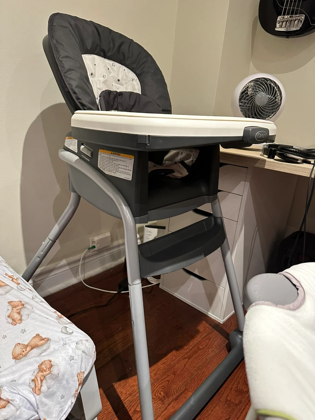 This is a Graco high chair with a removable tray. It has a padded seat and adjustable straps. Great for feeding time 240 original price