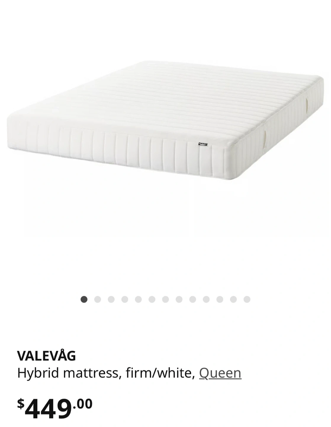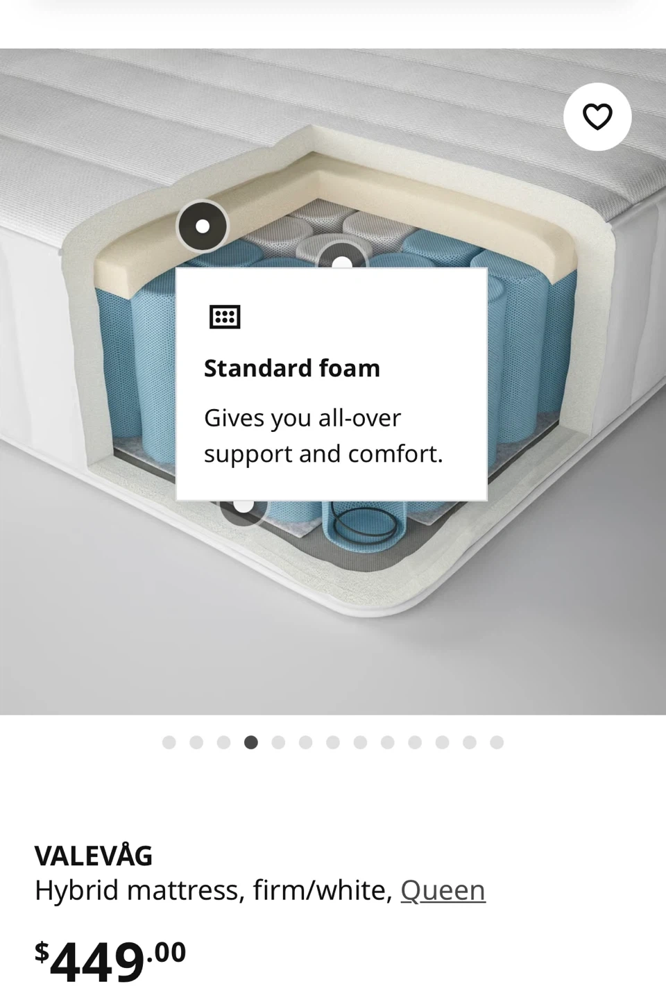 IKEA VALEVÅG Queen Hybrid Mattress - Firm, White