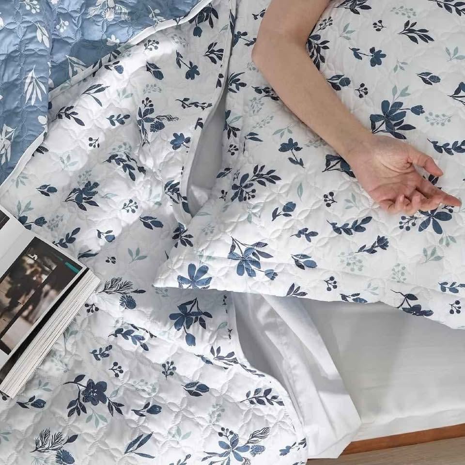 New - Floral Quilt Set King Reversible Blue & White Quilt