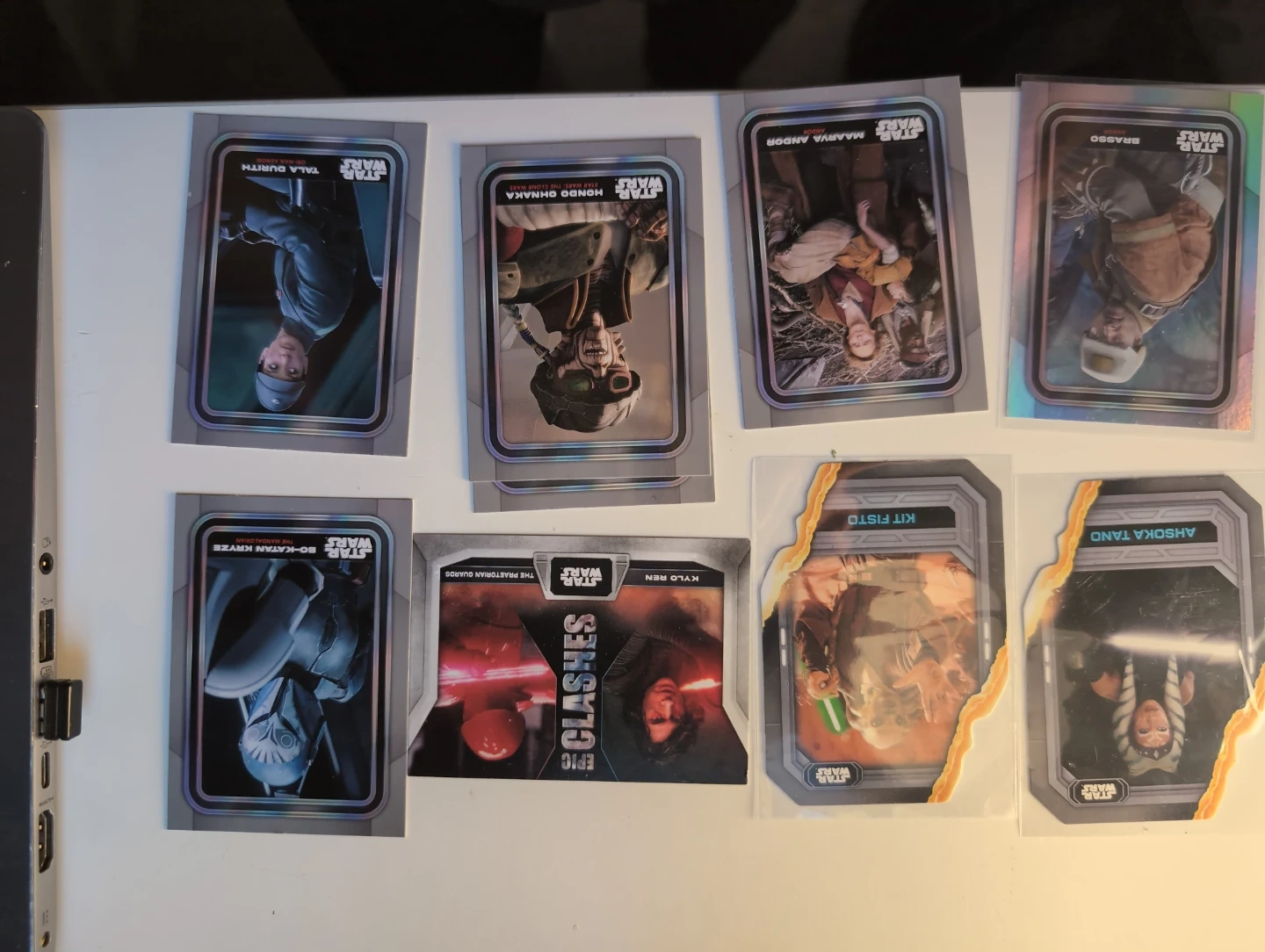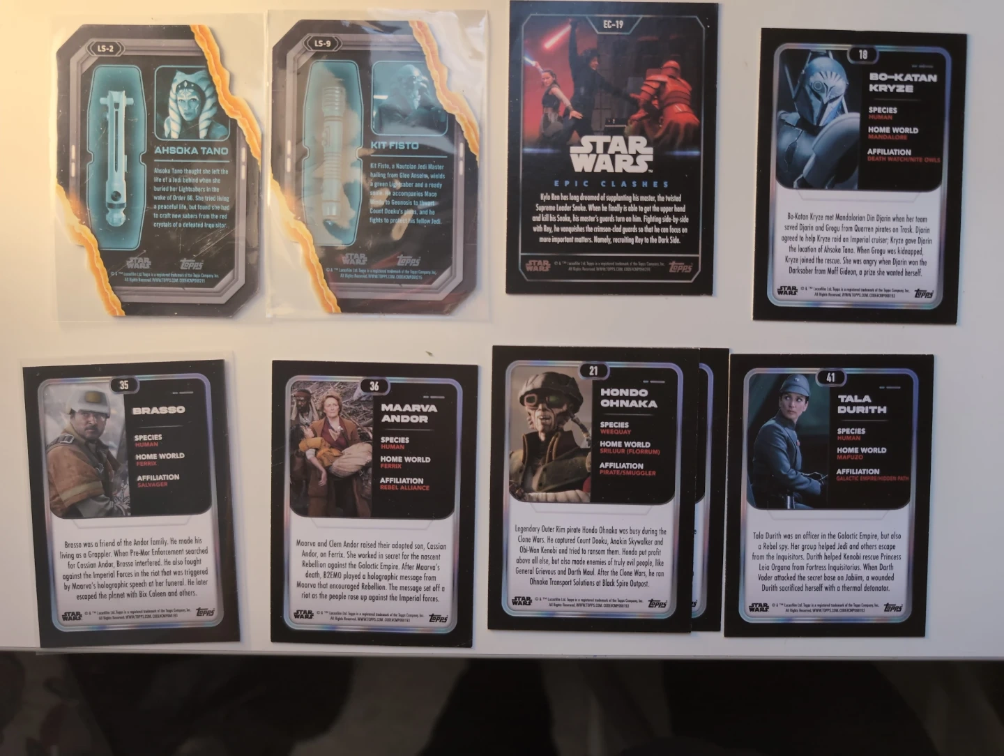 Selling a collection of Star Wars trading cards. A great addition for any Star Wars fan or collector! Each card features characters and scenes from the Star Wars universe. 21 cards in total. 3 have duplicates in excellent condition.
