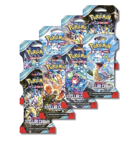 This is a collectible card game product from the Pokémon TCG Scarlet & Violet Stellar Crown set. It contains standard-sized English language cards, perfect for players and collectors. Suitable for ages 6 and up.