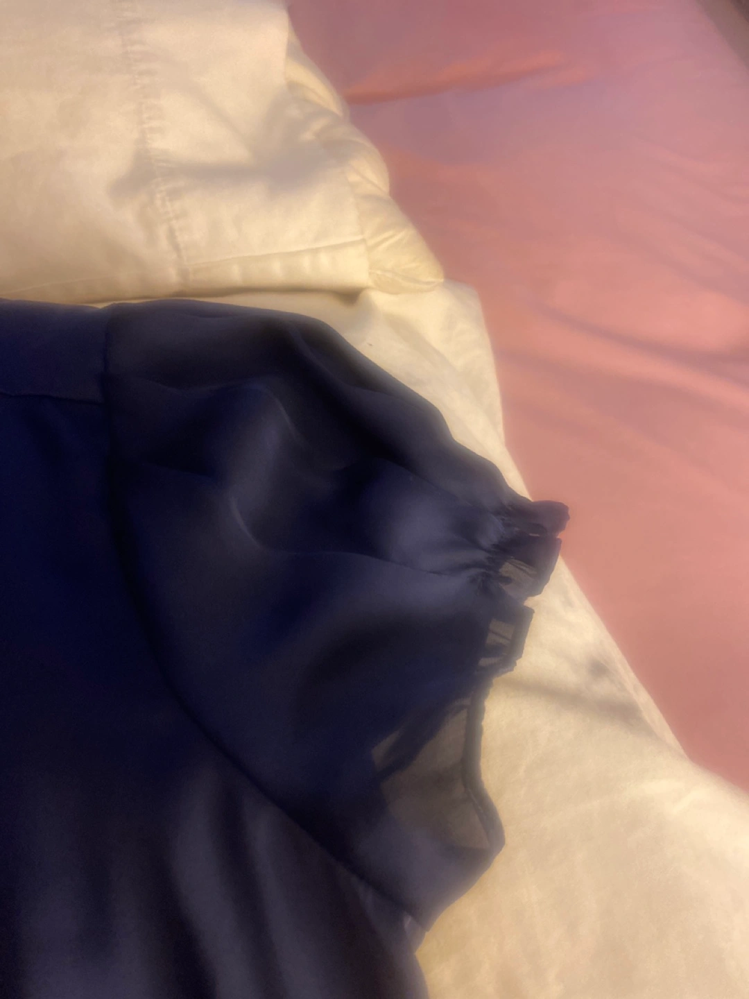 A lovely navy blouse from Fred David! It's a size medium and features a unique ruffled front. The material feels silky and smooth. Perfect for dressing up or down!