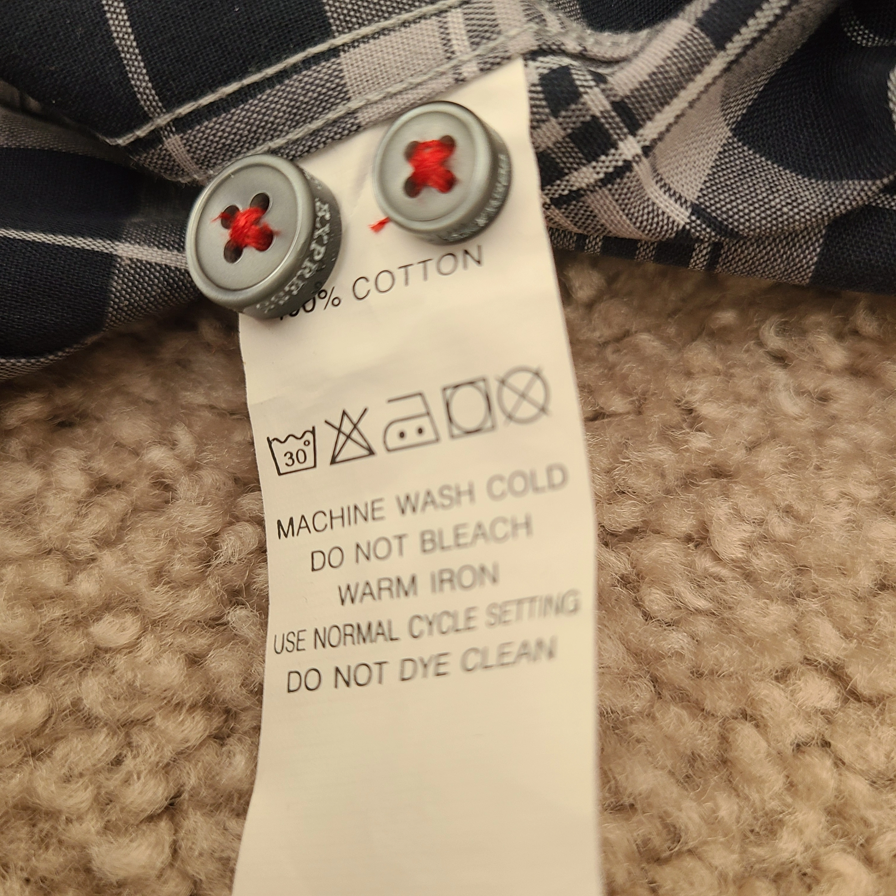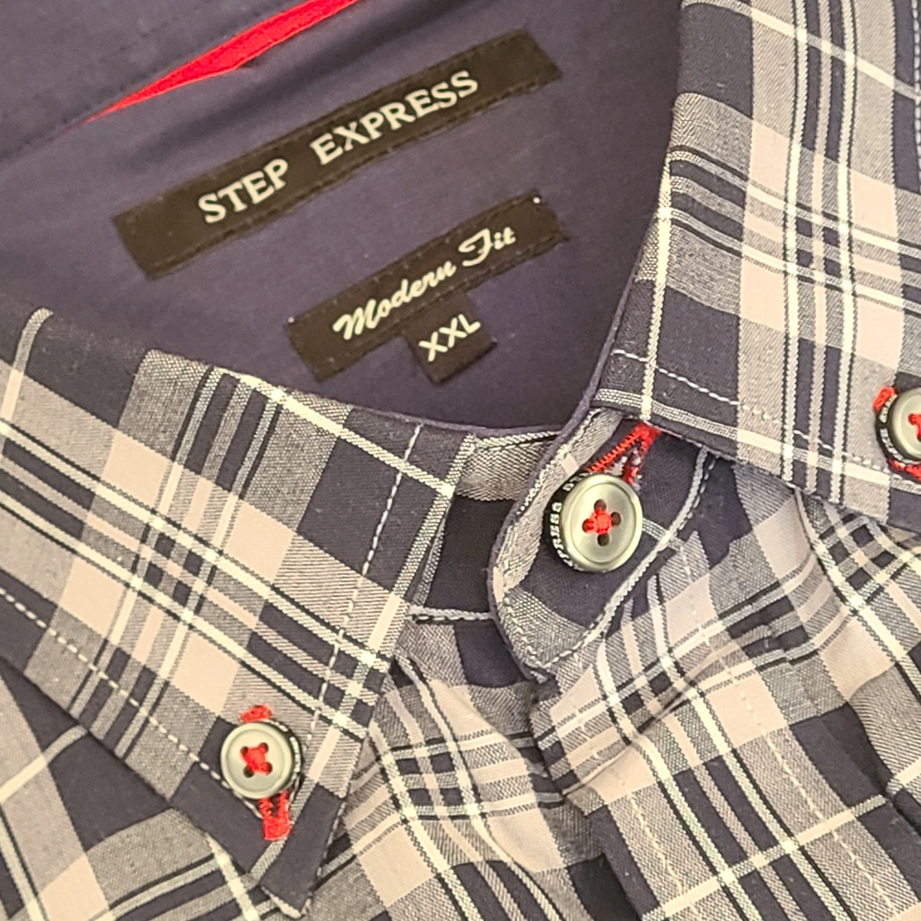 - Colour: Navy, grey, and white plaid