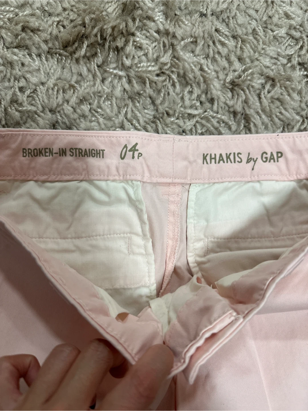 Buy & SellGap Women's Light Pink Khakis - Size 4Gap Women's Light Pink Khakis - Size 4$8Gap khakis in a light pink color. These pants are a broken-in straight fit. Made from 97% cotton and 3% spandex.Size4BrandGapWHERE TO MEETChinatownView MapSELLERverifiedBiyiChinatown1608 reviews0 chats·0 favorites·1 viewsSEND CHAT TO SELLERHi Biyi! I’m interested in your listing.Hi Biyi! I’m interested in your listing.Get the Karrot app to chatSign In to chat