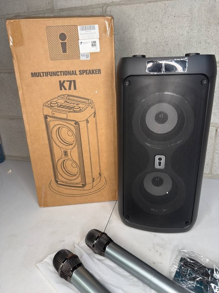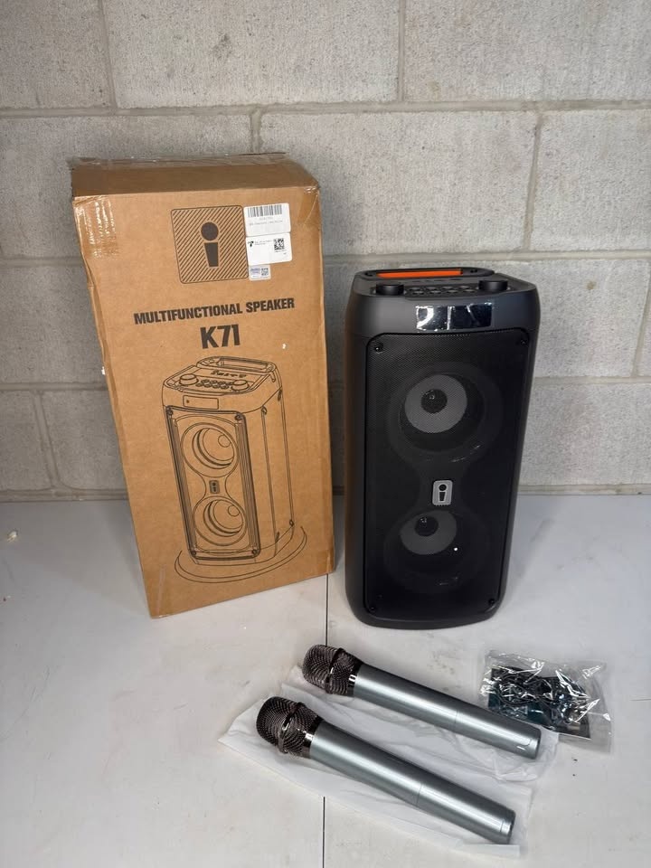 ‼️ All sales are final – no returns 💵 Cash only 🚚 Free Delivery In GTA over 50$ Condition: NEW JAPOUCA Portable 60W Karaoke Machine. Powerful portable karaoke system with dual speakers and two wireless microphones. Delivers loud, clear sound for rooms or outdoor spaces up to 500 sq. ft. Features Bluetooth, USB, TF, and AUX playback, plus built-in disco lights that sync to music. Includes adjustable mic effects and an indoor/outdoor EQ for balanced or bass-boosted sound—great for parties, camping, and family events.