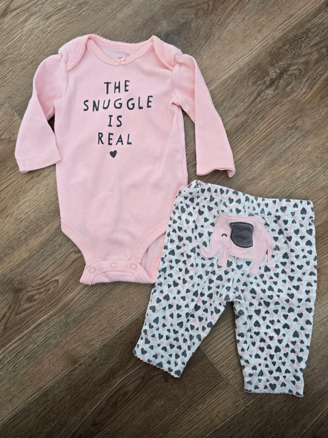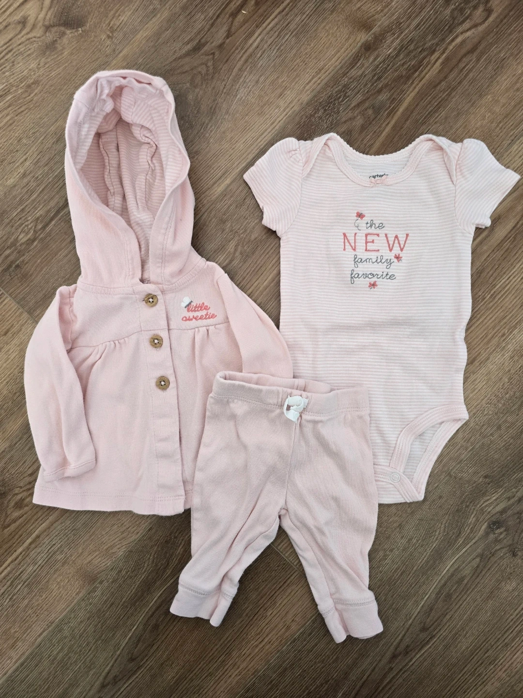 3 month old infant bundle in pinks! Complete outfits as well as cozy pajamas will take the guess work out of dressing your little one. Brands include Pekkle and Carter's.