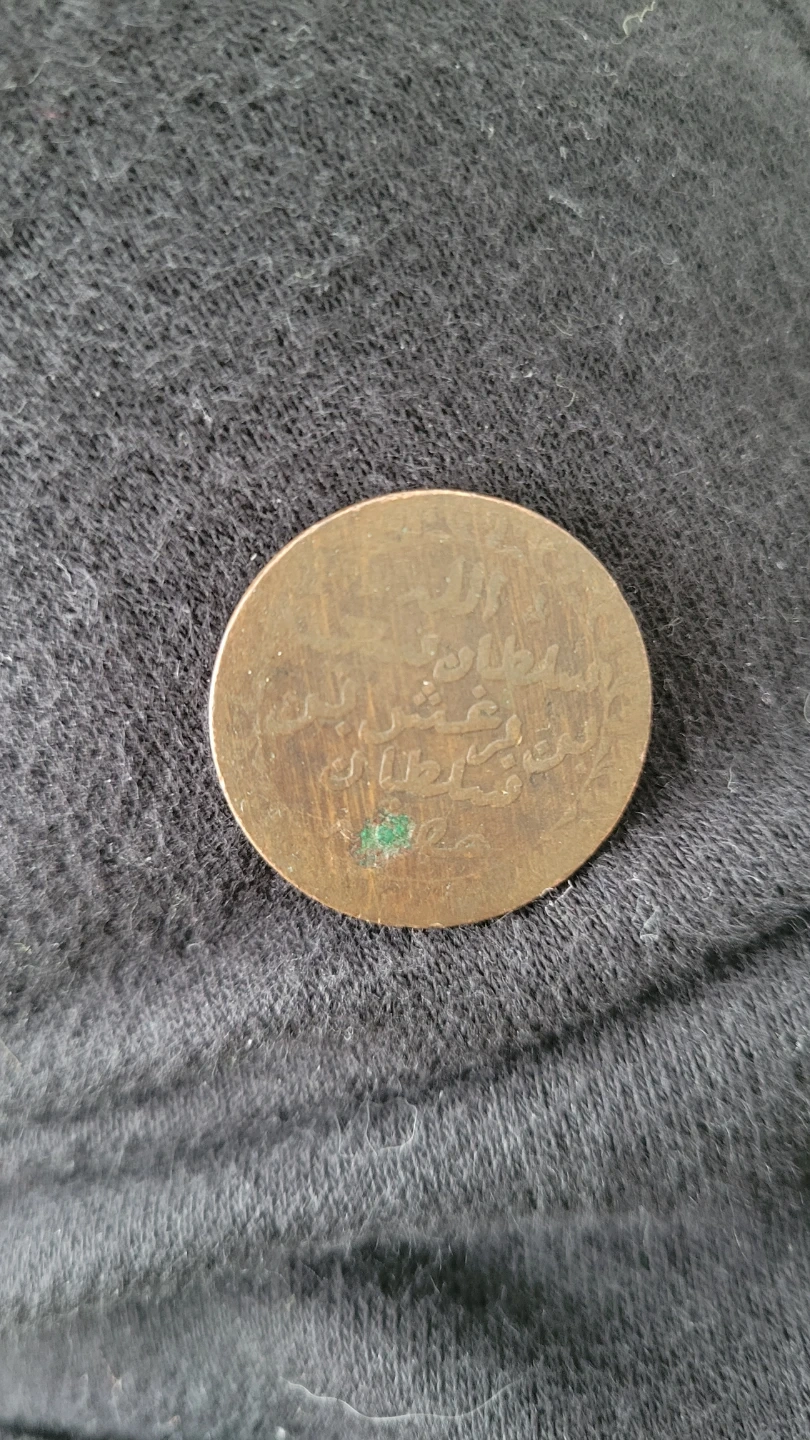 This is a vintage coin featuring Arabic script on one side and scales of justice on the other. It appears to be made of a brass or copper alloy. A great piece for collectors or for anyone interested in historical currency.