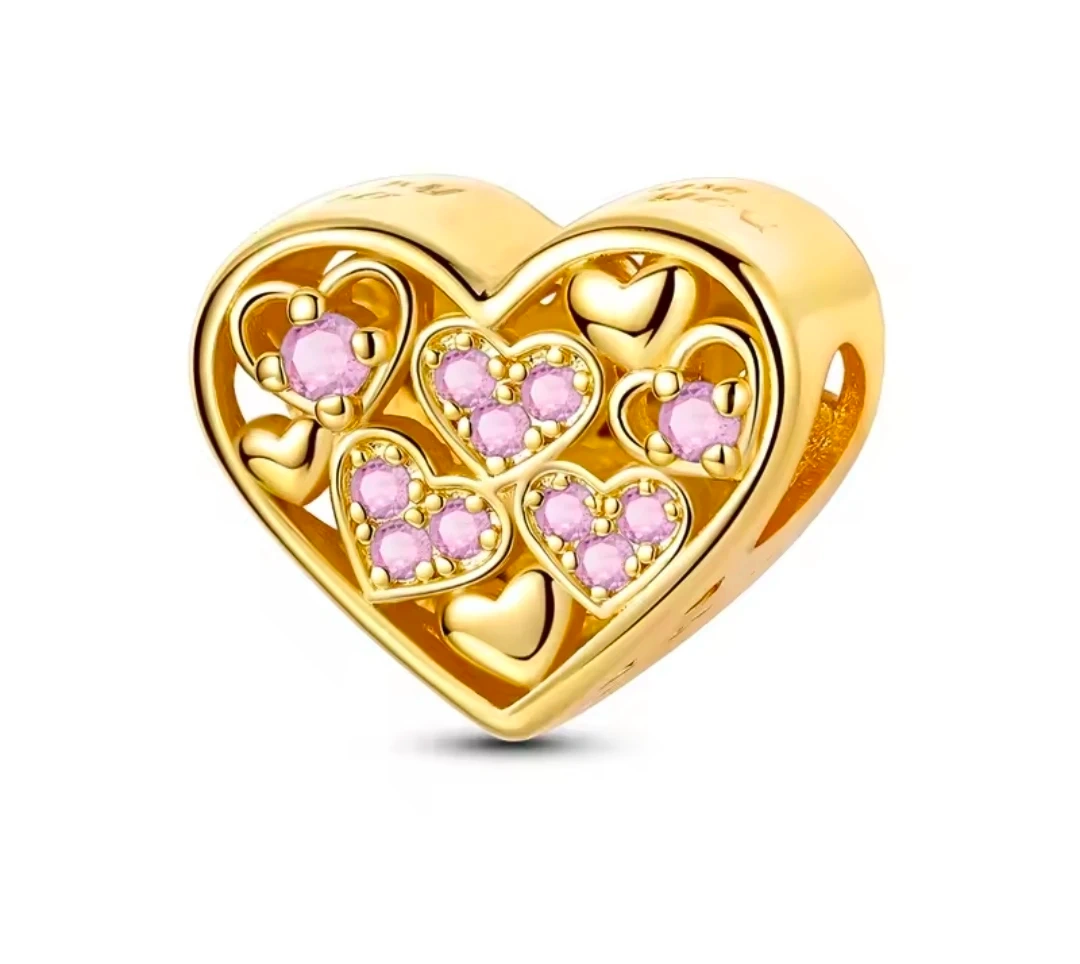 Selling a lovely heart charm in gold! It features an open heart design with smaller hearts inside, adorned with cute pink stones. Perfect for adding a touch of sparkle to your Pandora bracelet or necklace
