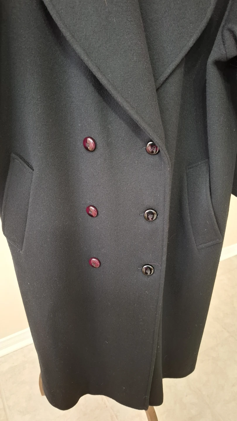 Fen-nelli Black Double-Breasted Wool Coat