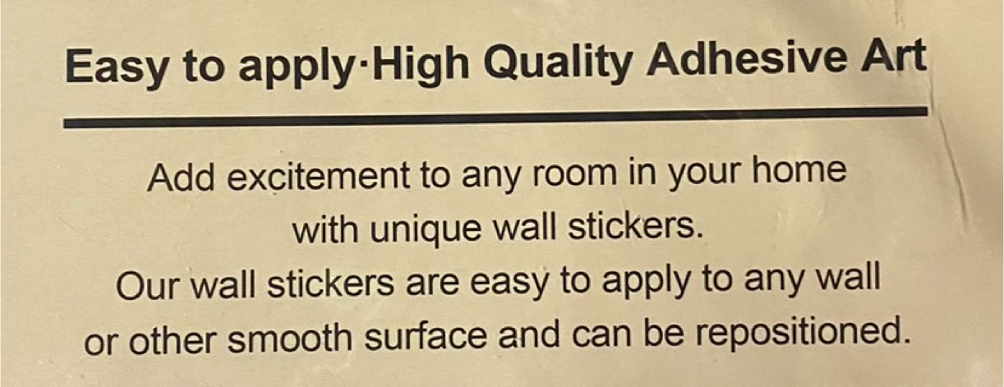 Easy to apply high-quality adhesive art for any room. Add excitement to your home with these unique wall stickers. They're easy to apply to any wall or other smooth surface and can be repositioned. Perfect for adding a decorative touch!