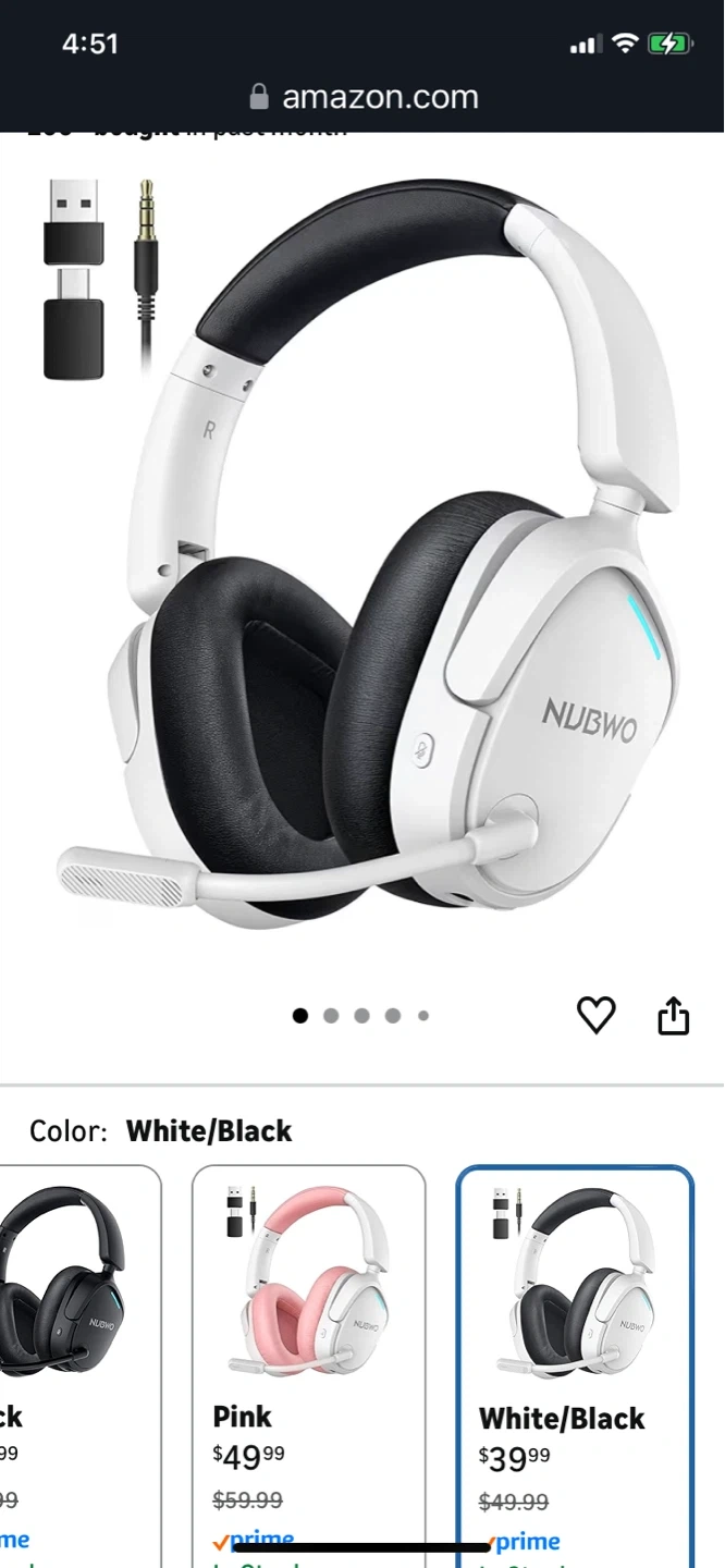 NUBWO Wireless Gaming Headset White/Black