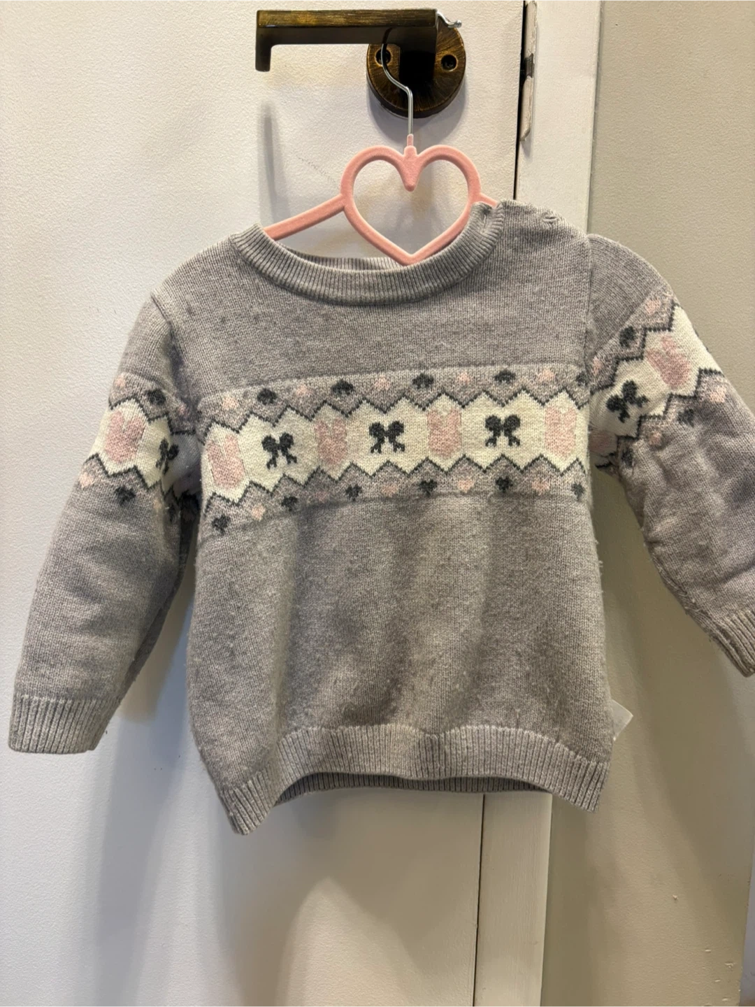 Dave & Bella Grey Knit Sweater with Bow Pattern