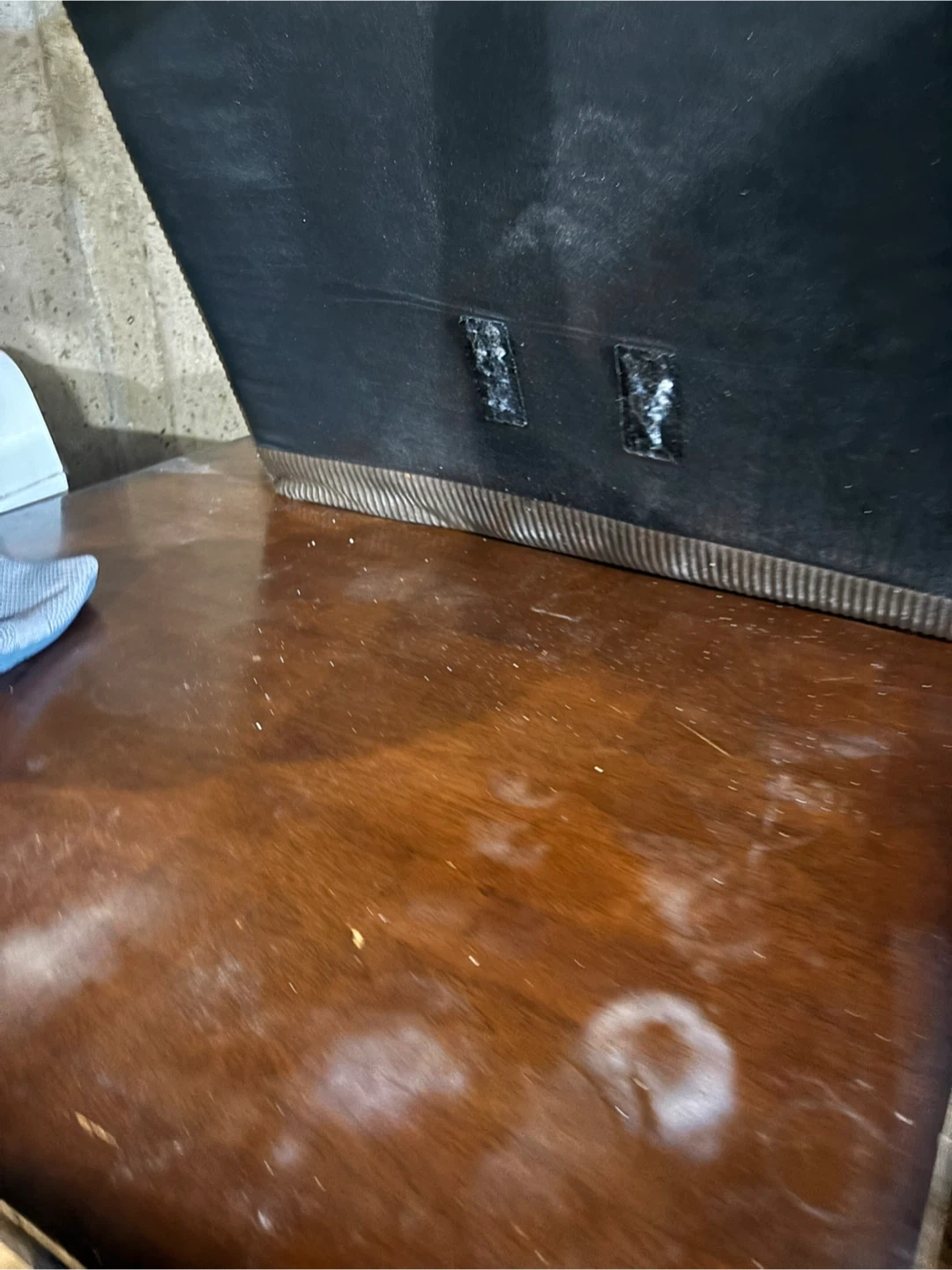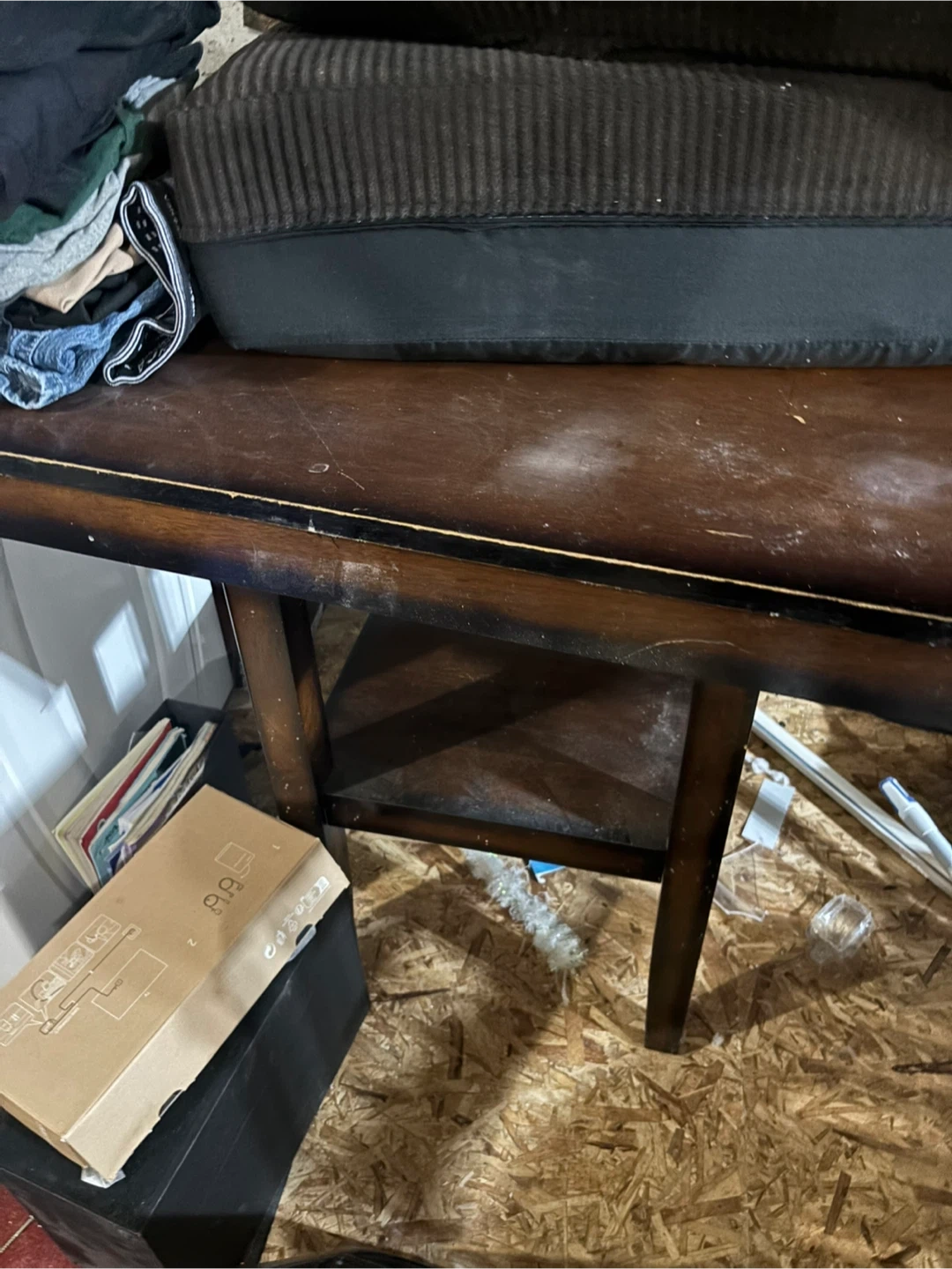 This is a wooden dining chair with a dark brown finish. It features a black upholstered seat for comfort. Chair construction is solid wood. Chair if wanted!
