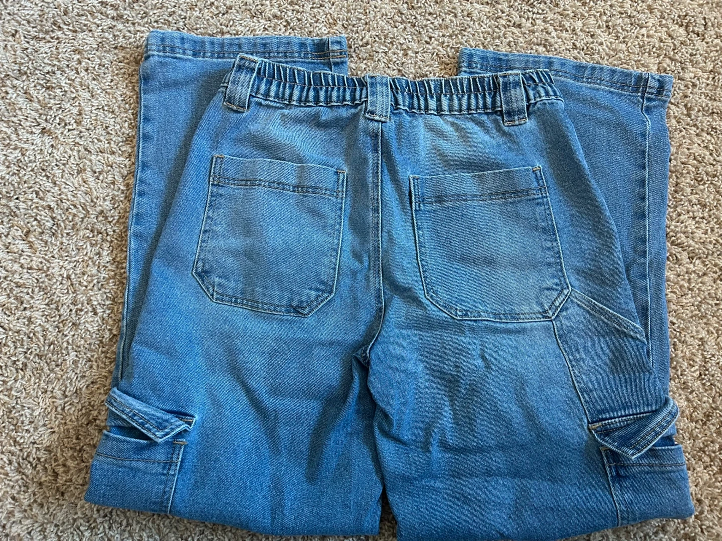 Barely worn, baggy jeans, with an elastic waist. Size 11/30 (large). No stains or rips. Smoke free home with one dog. The price is $10 cash only. Pick up in Sundance SE. Will hold for one day only.