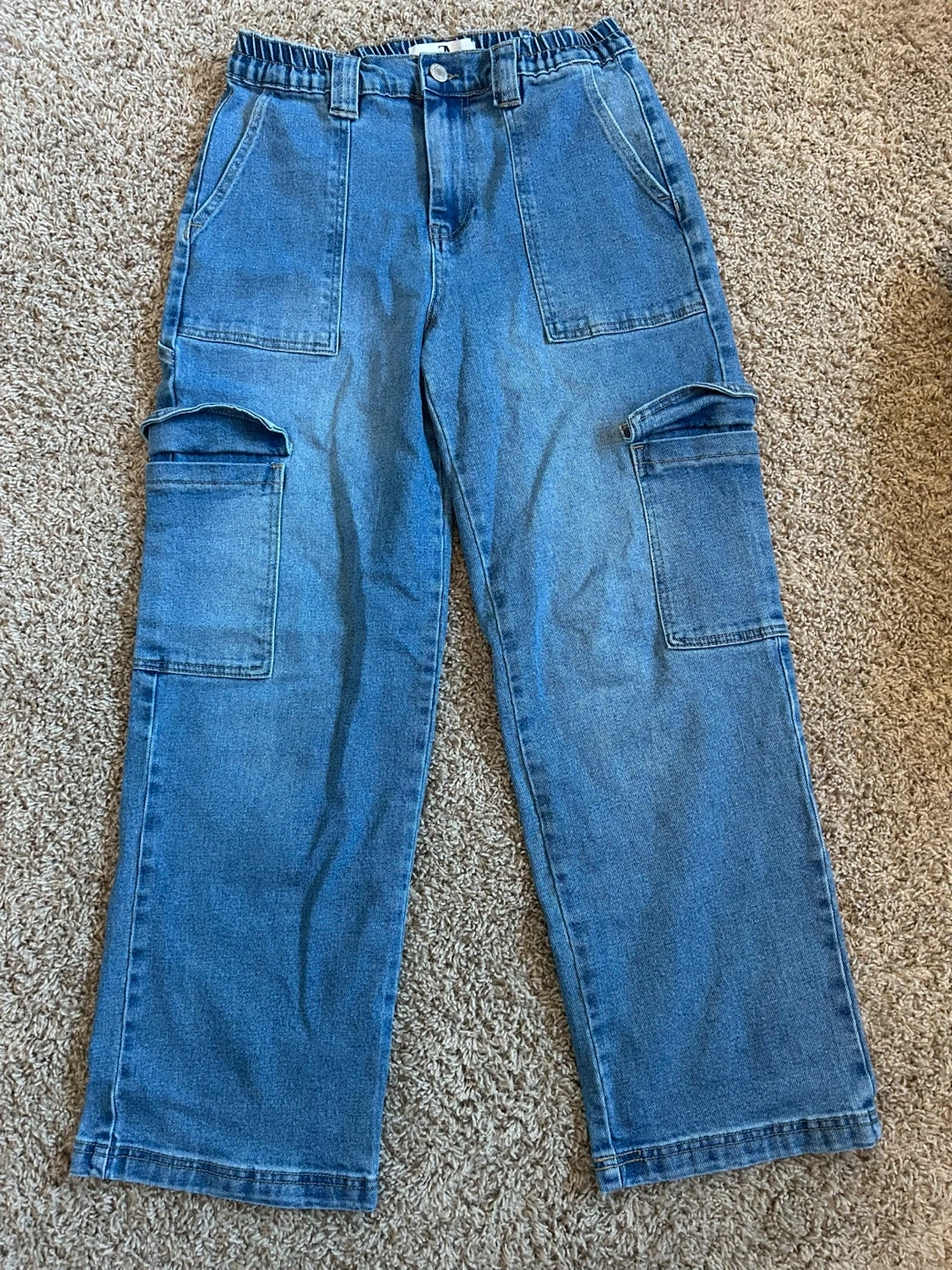 Barely worn, baggy jeans, with an elastic waist. Size 11/30 (large). No stains or rips. Smoke free home with one dog. The price is $10 cash only. Pick up in Sundance SE. Will hold for one day only.
