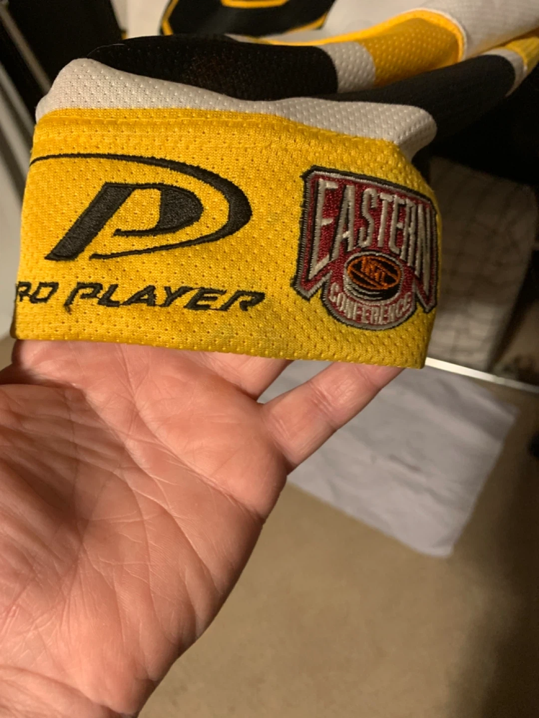 Pro Player brand hockey jersey with Thornton and number 6 on the back. Features Eastern Conference patch and NHL official licensed product logo. Size L/GD/L.