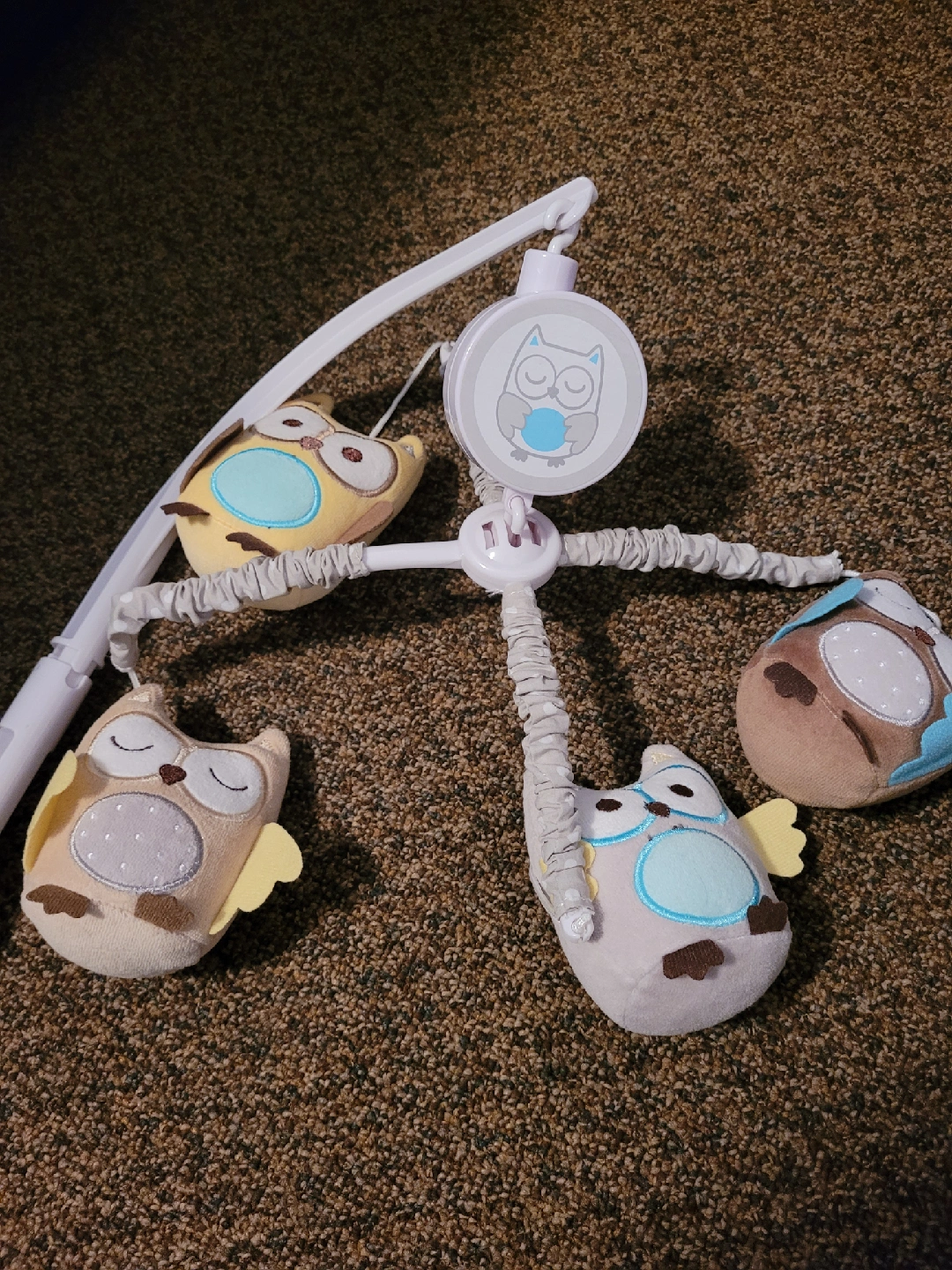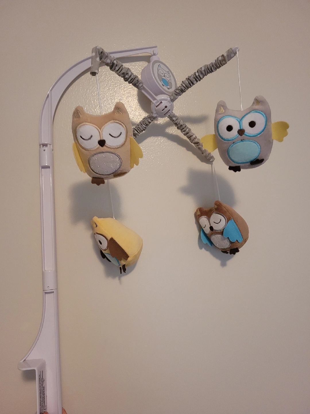 10This adorable owl mobile is perfect for soothing your little one to sleep! It features cute plush owls in soft colours that gently rotate to entertain and calm your baby. It easily attaches to most cribs, creating a peaceful and engaging environment for your little one