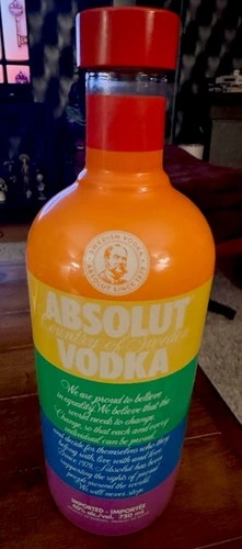 Elevate your collection with this Absolut Limited Edition “PRIDE RAINBOW 2015” empty 40 Oz bottle. It features a vibrant multi-color design and is a product of Sweden's renowned Absolut brand. This bottle is a celebration of Pride Month and commemorates the progress and color of the LGBTQ+ community. It's a modern collectible that holds significance beyond its empty form, serving as a statement of support and a vibrant reminder of the brand's heritage. Whether displayed on a shelf or used as a decorative item, this Absolut Pride Rainbow bottle is sure to spark conversations and admiration for its bold representation.