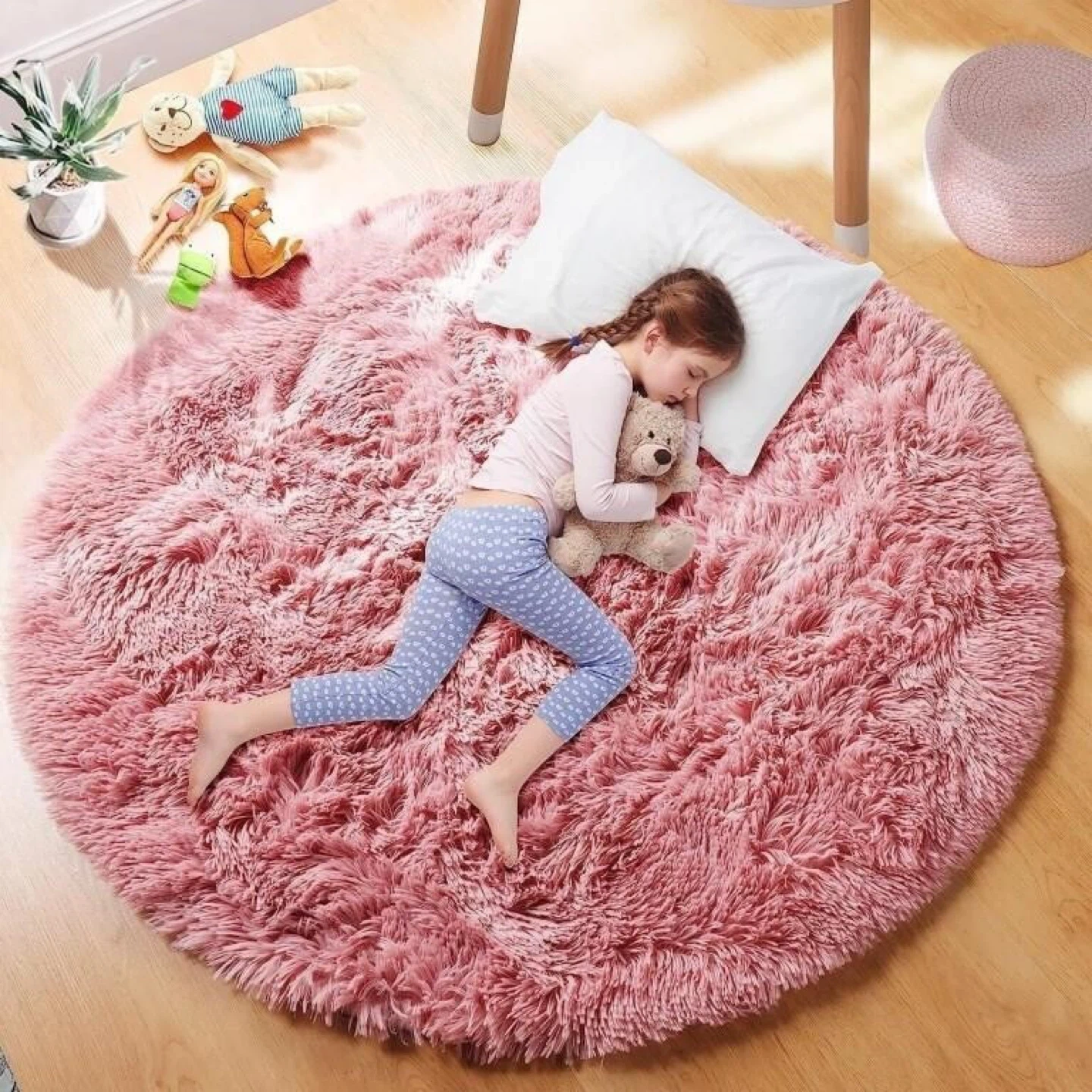 PAGISOFE 5Ft Round Rugs 5Ft, Fluffy Blush Rugs for