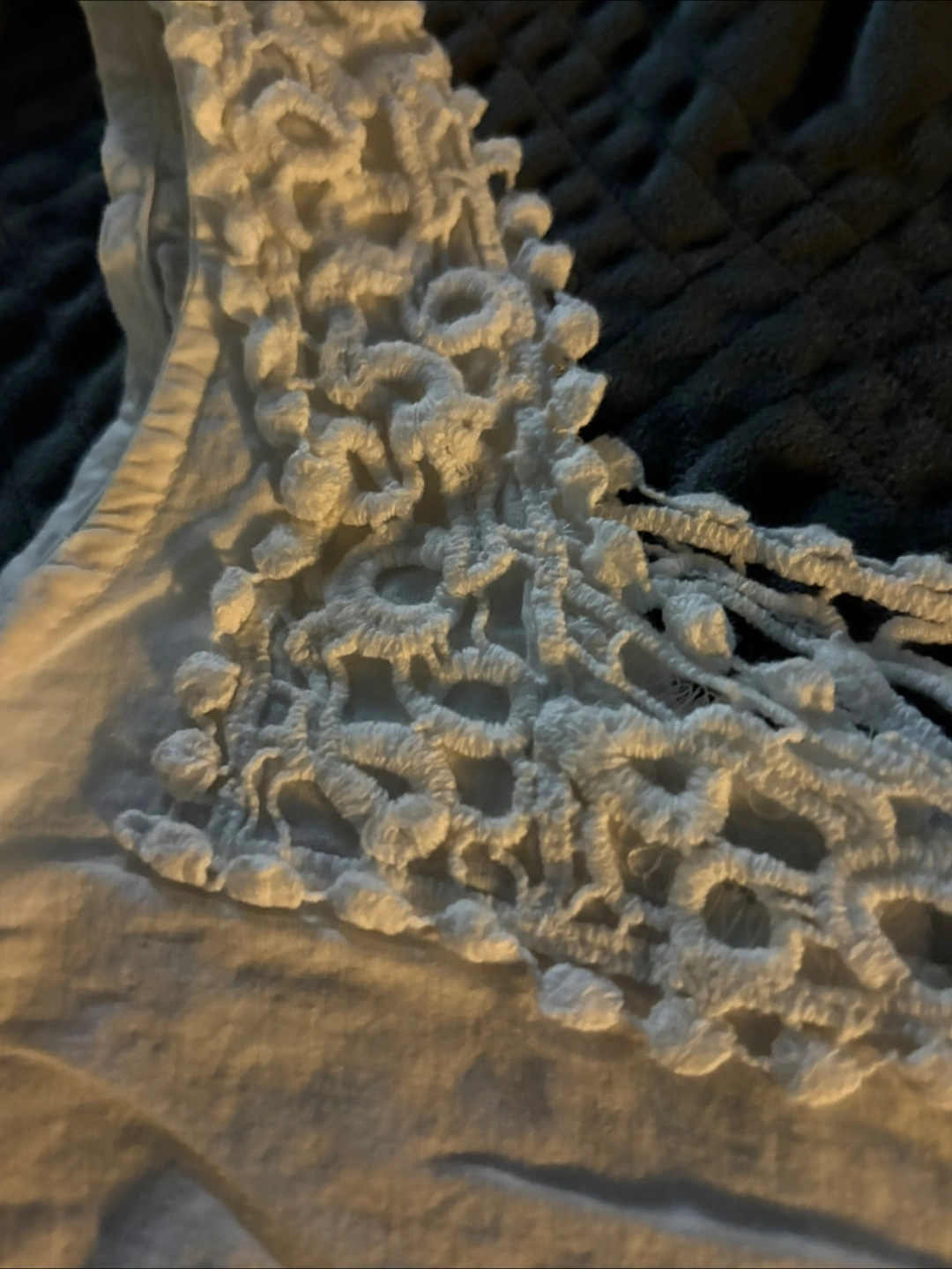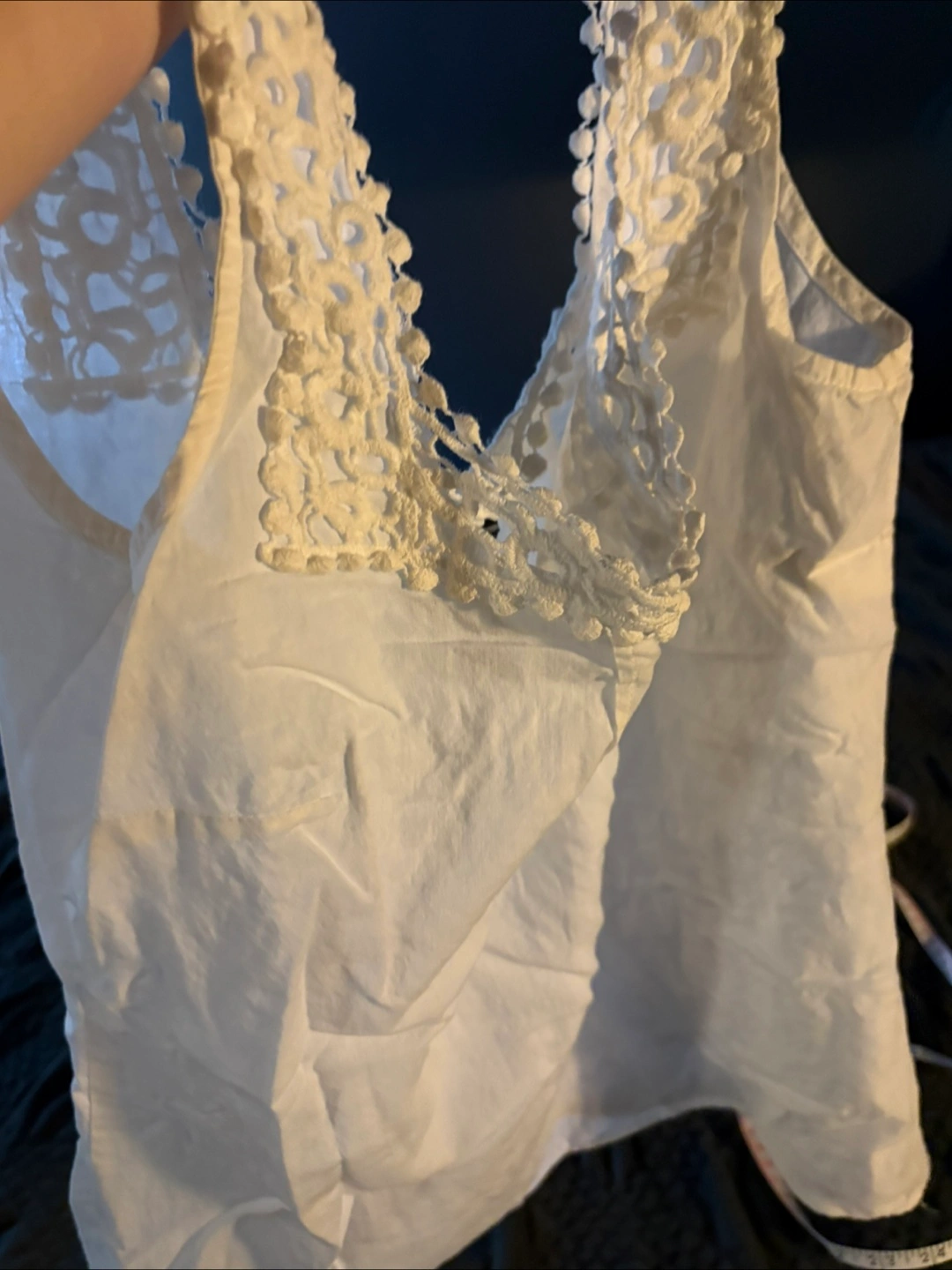Selling a cute Reitmans white tank top! It's a size small and made of 100% cotton. The top has a lovely crochet design around the neckline. Perfect for a casual summer day!
